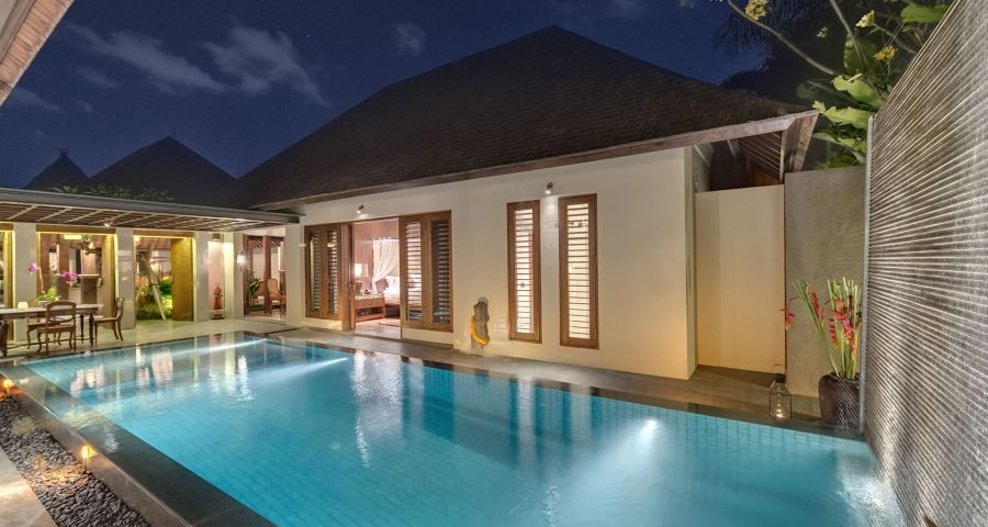 Rate 2 bedrooms: IDR 3,419,145 or approx. USD 257 per villa per night including taxes