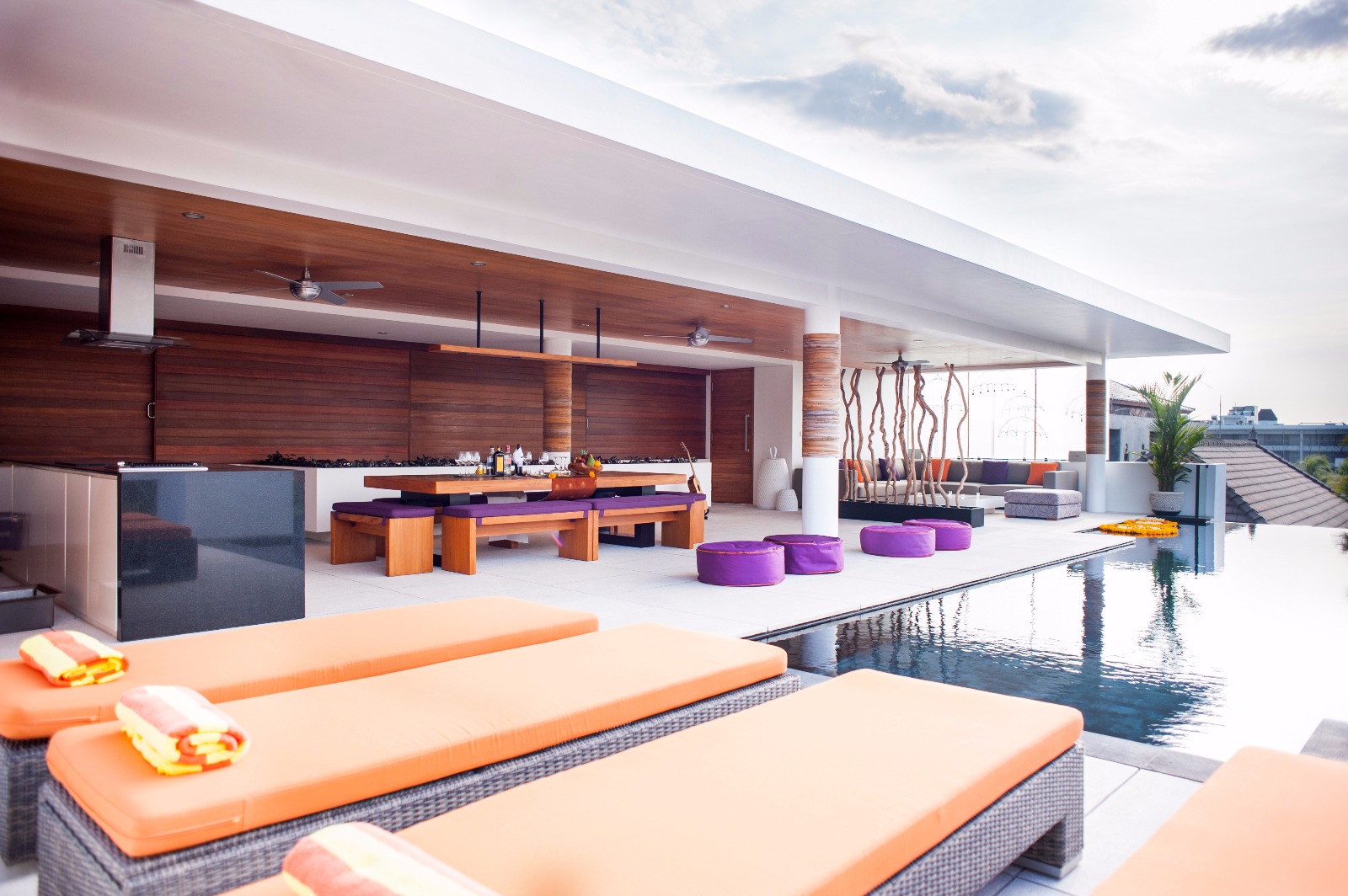 Luxuriously appointed bedrooms and bathrooms, numerous sitting areas to relax and a home theatre are on the main floors, while the stunning roof top area offers lounge and dining space adjacent to the welcoming infinity pool and sun terrace. With views over Seminyak and to the volcanoes beyond, here you can do nothing but relax as you’re cared for by a wonderful team of staff, all dedicated to ensuring you have a truly memorable stay that will live with you long after you leave Bali.