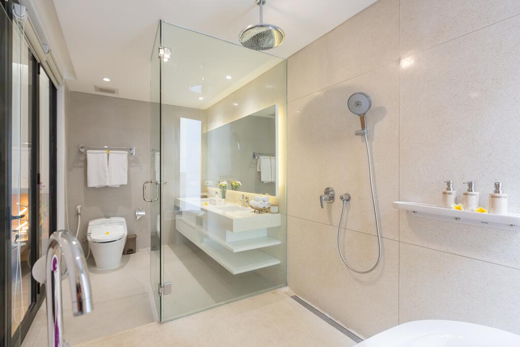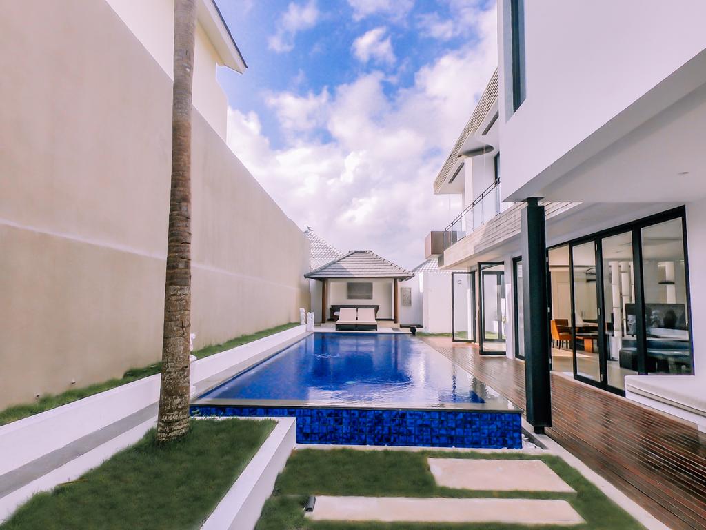 The villa’s design is simple, yet modern with transparent roof on the stairs, lighting your way up to the second floor. Have the perfect night sleep on its spacious 4 (four) bedrooms, with a guest bedroom located on the first floor, and the other three on the second floor. All bedrooms are in minimalist design, proving that ‘less is more’ concept is truly the best for a luxury rest. There is no unnecessary display, so the quality of sleep can be assured. The master bedroom and the other two guest room on the second floor are all equipped with ensuite bathroom, smart TVs with International channels, comfortable king size bed in the master and twin beds on the guests bedrooms and enough natural light in the morning. Inside the master bedroom, have a warm and relaxing dip into our Jacuzzi, for a luxury feel of easing in the afternoon.