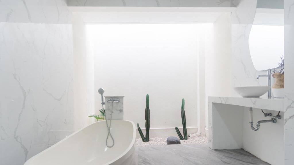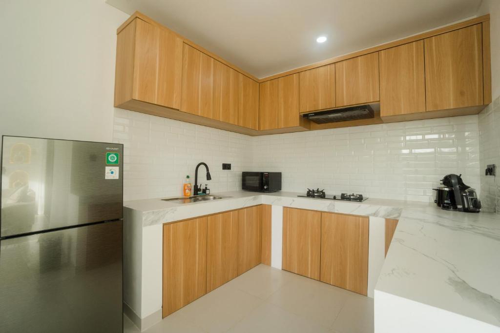 Welcome to our stunning villa, where luxury and comfort seamlessly blend. Inspired by Mediterranean style, the villa greets you with a beautiful swimming pool surrounded by lush gardens, offering a peaceful oasis. The open-plan living and dining area is perfectly positioned to provide a beautiful view of the pool, with the living room featuring tasteful furniture and air conditioning for a cool, welcoming atmosphere. The fully equipped kitchen includes everything you need for preparing meals, from cooking tools to utensils. The two bright, serene bedrooms offer a peaceful retreat, each with modern amenities like air conditioning and high-quality linen, ensuring a restful sleep in a stylish, comfortable setting.