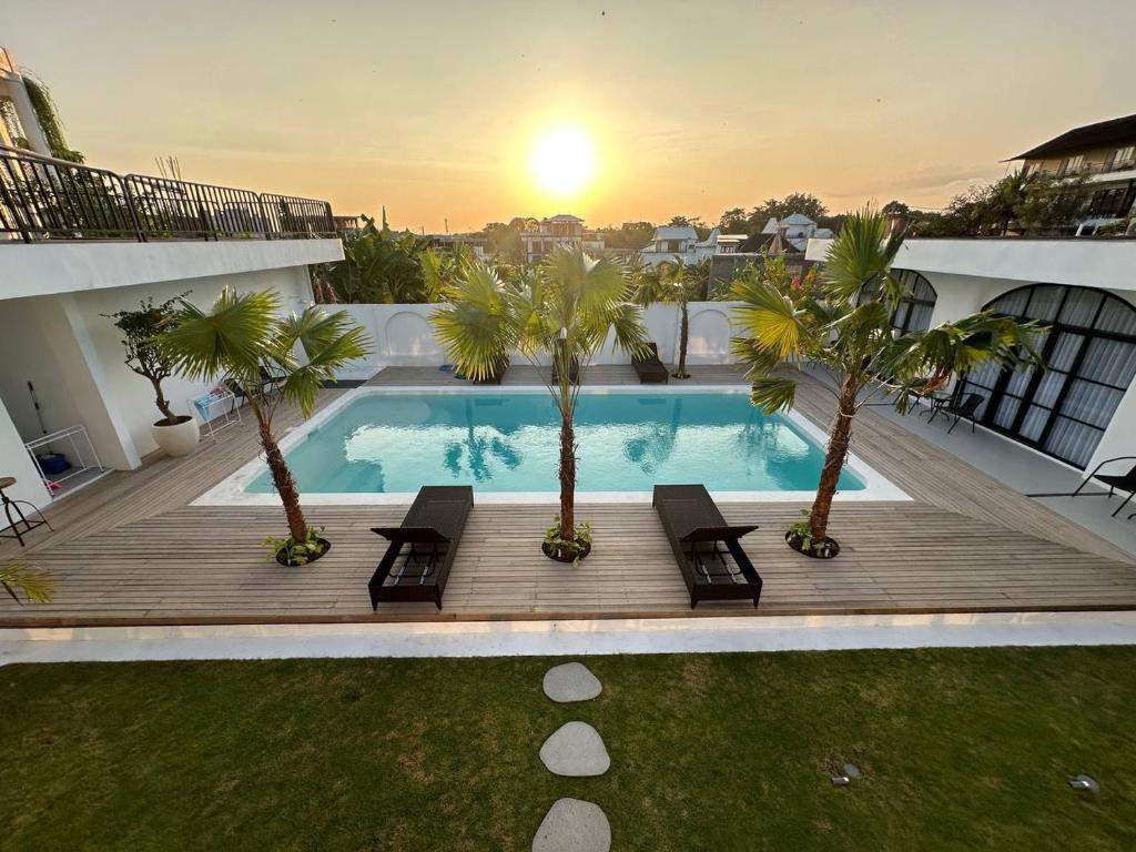At this accommodation, guests can experience a blend of luxury and relaxation with an infinity pool and complimentary bikes at their disposal. This charming accommodation offers comfortable rooms with private patios and a fully-equipped shared kitchen, perfect for those who enjoy cooking their own meals while soaking in the vibrant atmosphere of Canggu. Each room is a haven of comfort, featuring air conditioning, a terrace with pool views, and a private balcony with garden vistas. Guests will appreciate the thoughtful amenities, including a satellite flat-screen TV, a well-stocked kitchenette with an oven and microwave, and a sleek private bathroom with a walk-in shower and hairdryer. The accommodation ensures a homey touch with provided bed linen and towels, making your stay as convenient as possible. Whether you're lounging by the pool, enjoying a meal on your balcony, or exploring the local area with one of the free bikes, this accommodation promises an inviting and memorable Bali experience.