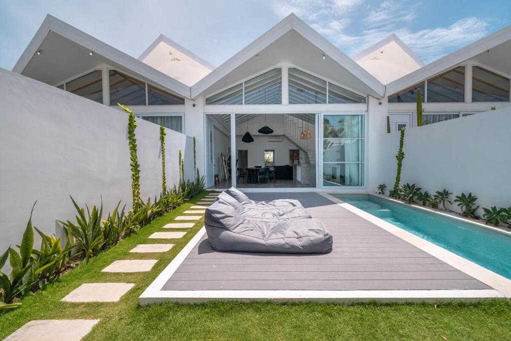 Escape to the vibrant shores of Bali and experience a slice of paradise at our charming 3-bedroom villa 3, nestled in the heart of Berawa, Canggu. This cottage-style retreat offers the perfect blend of tranquility and accessibility, ensuring that your Bali adventure is as relaxing or as action-packed as you desire. Situated just a few minutes' drive from the pristine Berawa Beach, the trendy Finns Beach Club, and the energetic Atlas Beach Fest, our villa places you right in the center of Canggu's vibrant scene. You'll also have quick access to both Canggu and Seminyak, making it a breeze to explore the area's best restaurants, cafes, and boutiques. As you step through the entrance, you'll be greeted by a lush, spacious garden that wraps around a sparkling pool. Inside, the villa boasts a beautifully designed open layout with soaring ceilings, allowing natural light to flood the space. The fully equipped kitchen offers everything you need to whip up a delicious meal, complete with a dining table that can comfortably seat your entire group. The cozy living area, with its plush sofa and smart TV, is the perfect spot for movie nights or casual conversations. On the ground floor, you'll find two charming guest bedrooms, each designed with comfort in mind. These rooms share a well-appointed bathroom, making them ideal for friends or family traveling together. Head upstairs to discover the massive master bedroom, a true retreat with its own ensuite bathroom.