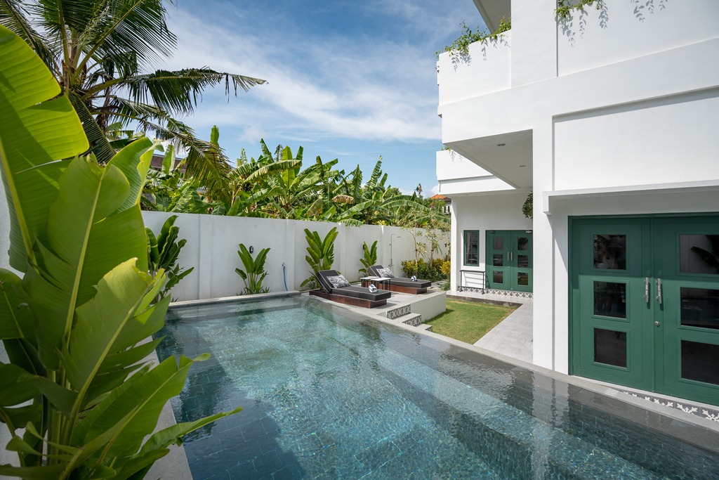 The Villa is located at the end of a street in north Berawa. The villa is surrounded by empty land, with partial views of neighboring paddy fields and farmland. The main road is a simple 5 minute walk, while a scooter or car offers easy access to all the extensive spas, cafes, bars, beachclubs, and shopping that Berawa is now justly famous. Within minutes from the villa, guests can access the short cut to Jalan BatuBolong, or travel on Jalan Pantai Berawa to Finns Recreation Club with the Pepito supermarket close-by, leading further on towards Seminyak