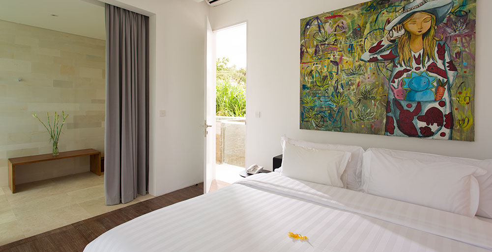 This Villa sits 100 metres from the beach in a local village neighbourhood. A few hundred metres in either direction along the beach will bring you to a few popular beach bars and small restaurants, especially around sunset time. Check out Old Man’s restaurant, bar and live music venue a short walk up the beach to the north, as well as the well-known Echo Beach for daily barbecues and Sunday-night live music. If you are interested in learning to surf, High Tide Surf School (for kids and adults) is situated just five minutes’ walk up the beach at Batu Bolong. Designed to maximise the natural light and catch the cool breezes even at the hottest time of year, the villa is decorated with an exciting collection of colourful artwork and offers a choice of air-conditioned comfort or tropical semi-open-air living with wide glass doors that can be opened to invite the sea breezes inside. Guests also have the choice of indoor and outdoor dining areas to suite every occasion. The villa is well suited for groups of friends or families, with plenty of facilities for kids and a professional team of staff that includes a manager, butlers, housekeeping, 24-hour security, a car and driver and a private chef. With its flats lawns, reception areas and sweeping staircase. Canggu is fast evolving into Bali's hippest beachside scene, with a laid-back vibe, numerous eateries, vibrant live music venues, yoga studios, spas and some chic beachwear boutiques all just five minutes' drive from the villa.