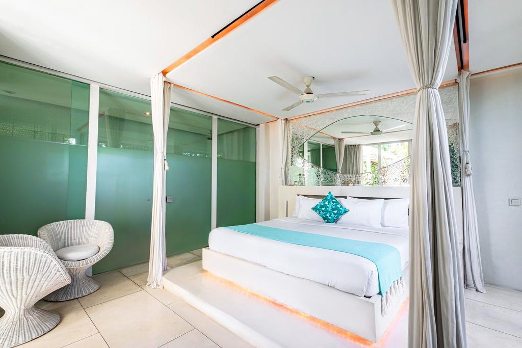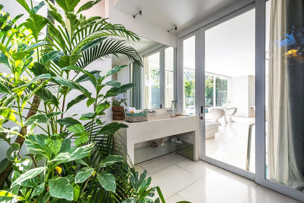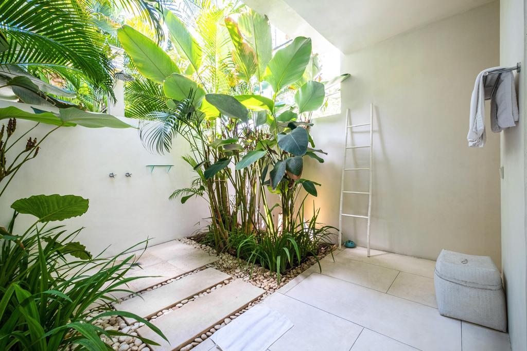 This 5-bedroom villa is located in Canggu, Bali. As the name suggests, the villa flaunts an all-white theme all around the property, which reflects luxurious simplicity. This stunning villa boasts spacious and stylish bedrooms with en-suite outdoor showers, a large private pool, and paddy field views. This villa sure is perfect for jet setters looking for the right blend of comfort, convenience, and style. The whitewashed serenity, of course, extends to the chic and roomy 5 bedrooms, which are basically our favourite spaces at the villa. The three bedrooms on the ground level feature outdoor showers, while the two bedrooms on the upper level have indoor showers with amazing views of the rice paddies.