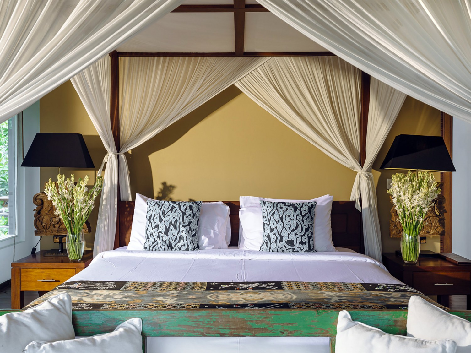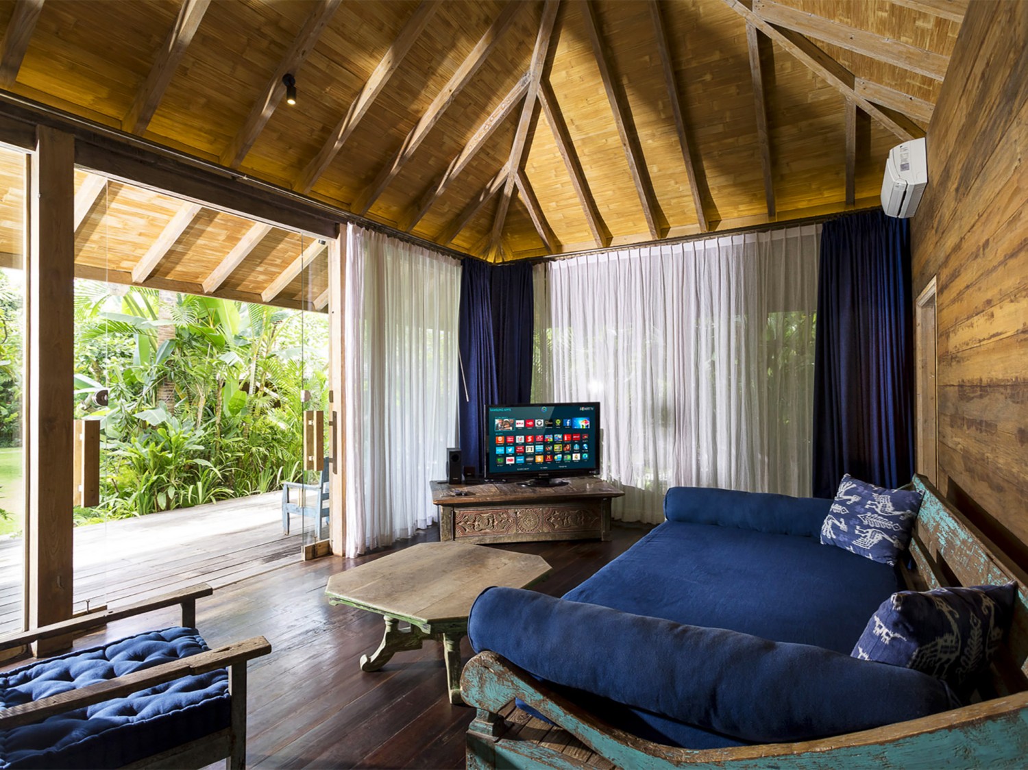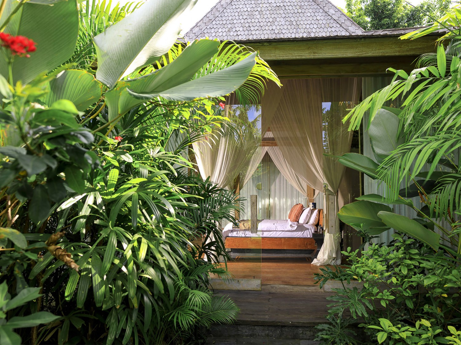 The seductively exotic this villa lays claim to an exclusive riverside position overlooking south-west Bali’s luscious rice terraces. This luxurious private villa is set in the beautiful village of Pererenan, where bohemian cafés meet traditional Balinese life within a stone’s throw of the ever-popular Echo Beach and its revered surf break. A chic contemporary pavilion and antique timber joglos elegantly adapted for luxury living house this villa's seven bedrooms. Sweeping lawns, gorgeous tropical gardens, two swimming pools and dining areas, a barbecue and billiard balé, yoga studio, garden grottos and a full team of professional staff coalesce to create a chilled and extravagant habitat. Seven luxurious bedrooms are spaced throughout the estate, providing an ideal arrangement for extended families or groups of friends to enjoy blissful privacy. Expansive lawns separate the buildings, dotted with shady daybeds set within the established tropical gardens that also forge secluded spaces. At the centre of this villa is an 16-metre swimming pool, which is crowned by an open-fronted entertainment space and bordered by sun loungers, cushioned daybeds and a freshwater shower carved from stone. Beyond the pool a large balé with charming views of the river and surrounding rice fields houses a pool table, abundant seating and a barbecue.