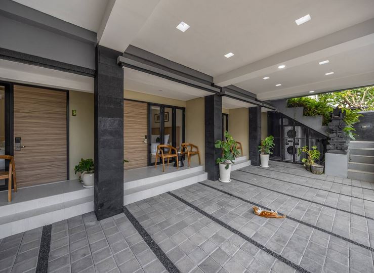 This property, located in the peaceful Kesiman Kertalangu area near Sanur, offers a quiet and comfortable stay with six stylish studio suites. Each suite includes a Queen-sized King Coil mattress, a spa bathtub, air conditioning, a 43-inch smart TV, and free Wi-Fi, with some featuring balconies. The property also offers a shared balcony and a summer kitchen. Only 15 minutes from Sanur Beach, the property provides easy access to water sports, dining, and local attractions. With modern Indonesian decor and a peaceful atmosphere, it’s an ideal place to relax and explore Bali.
