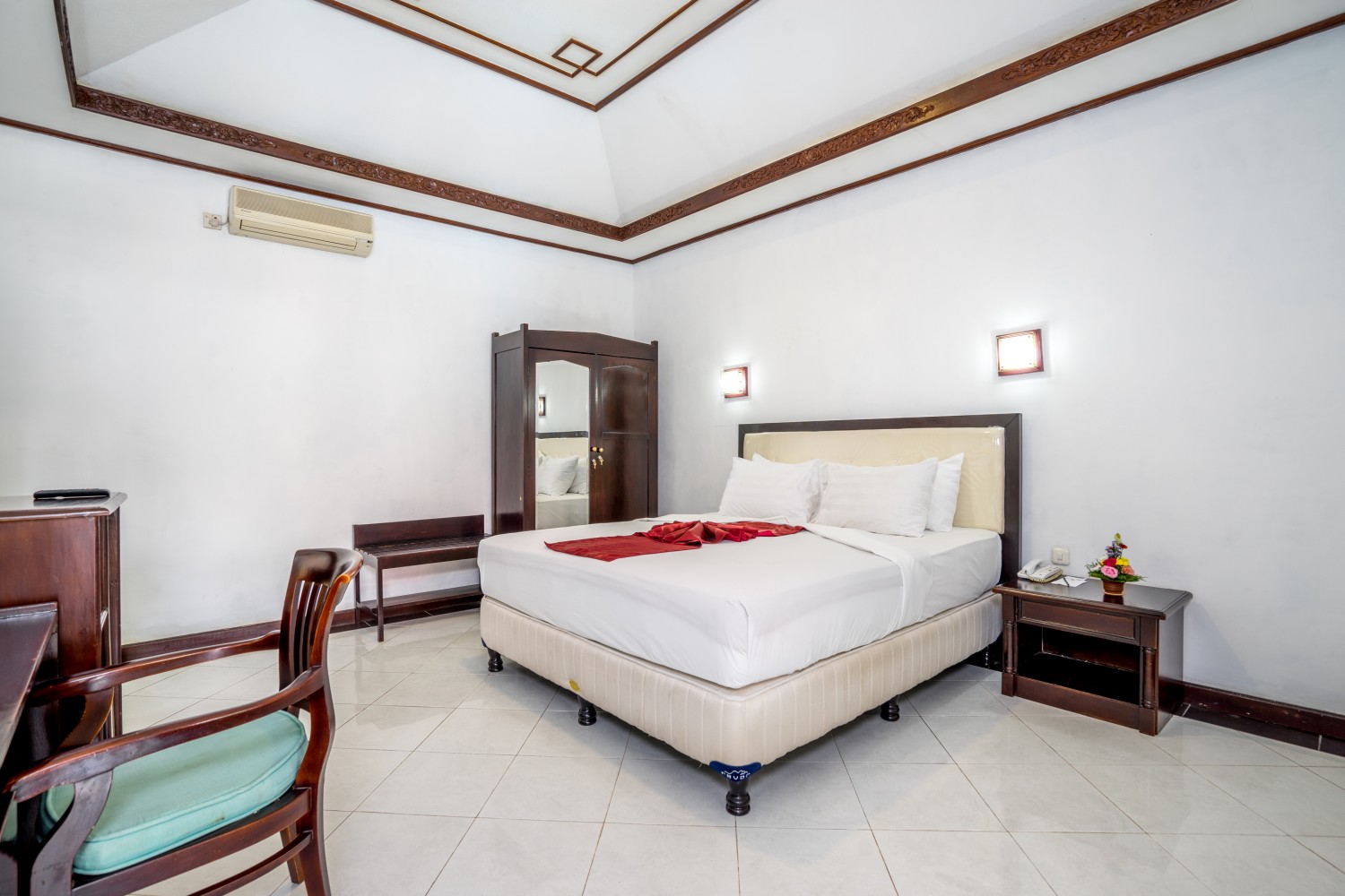 This accommodation is ideally located in the heart of Denpasar, the capital of Bali, Indonesia. The hotel offers convenient access to government offices, the Bali Art Museum, the Art Centre, the Residence of the King of Denpasar (Puri Satria), shopping centers, and traditional markets. Sanur Beach is just 15 minutes away, Kuta Beach is 30 minutes, and the airport is a 40-minute drive. The Deluxe Pool View rooms cover an area of 33sqm.