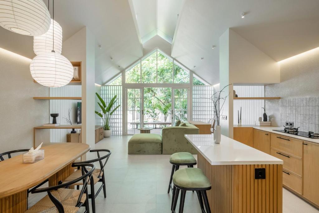 Tucked away in the vibrant heart of Jimbaran and just a short stroll from the beach, this villa presents a charming collection of 20 uniquely designed one bedroom villas. Each villa comes with air conditioning, high-speed internet, a fully equipped kitchen with a dining area, and a Smart TV for your entertainment. Guests can unwind in the privacy of their own villa’s pool or bask in the sun by the stunning 25-meter-long infinity pool, where refreshing drinks and a lively atmosphere await. Whether you’re enjoying a serene swim or mingling with fellow guests, this villa offers the perfect blend of relaxation and socializing.