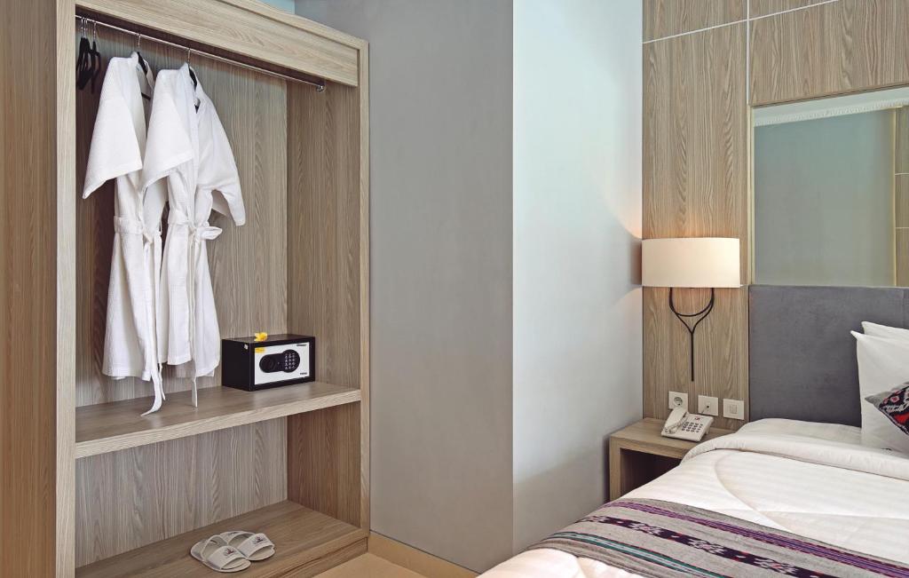 This accommodation offers a spacious and welcoming atmosphere, styled with modern décor in warm earthy tones. The 42 m² bedroom provides both comfort and convenience, while a handy kitchenette countertop is available for preparing light snacks and drinks. Nestled in Jimbaran, in the southern part of Bali, this accommodation delights guests with charming garden and pool views.