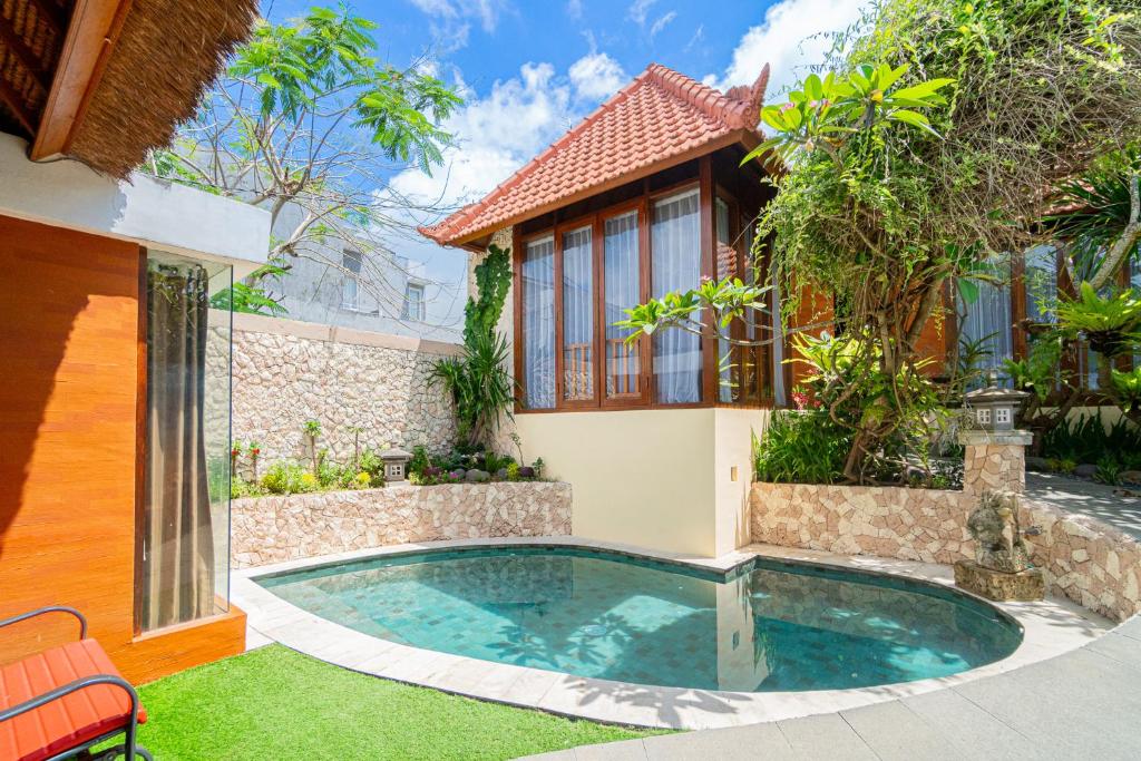 Situated in the enchanting area of Jimbaran, this villa provides a stylish retreat just 2.7 km from Garuda Wisnu Kencana and 3.5 km from Samasta Lifestyle Village. Enjoy modern comforts including complimentary WiFi, air conditioning, and a refreshing outdoor swimming pool surrounded by a lush garden. This villa offers a cozy escape with two inviting bedrooms, a flat-screen TV, and a well-equipped kitchen. It also boasts two bathrooms with showers, complete with fresh towels and crisp bed linens. Whether you’re lounging by the pool or relaxing in the comfortable interiors, this villa promises a delightful stay.