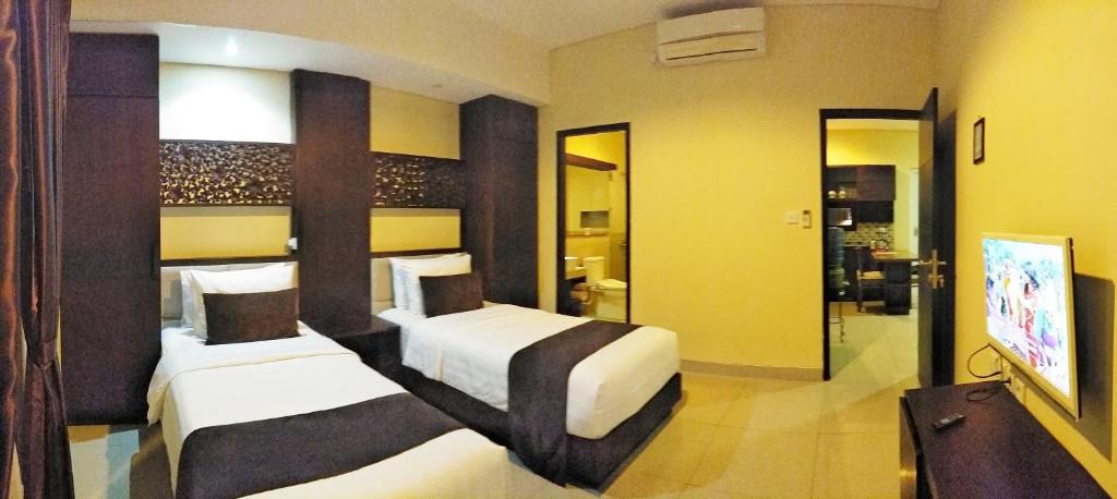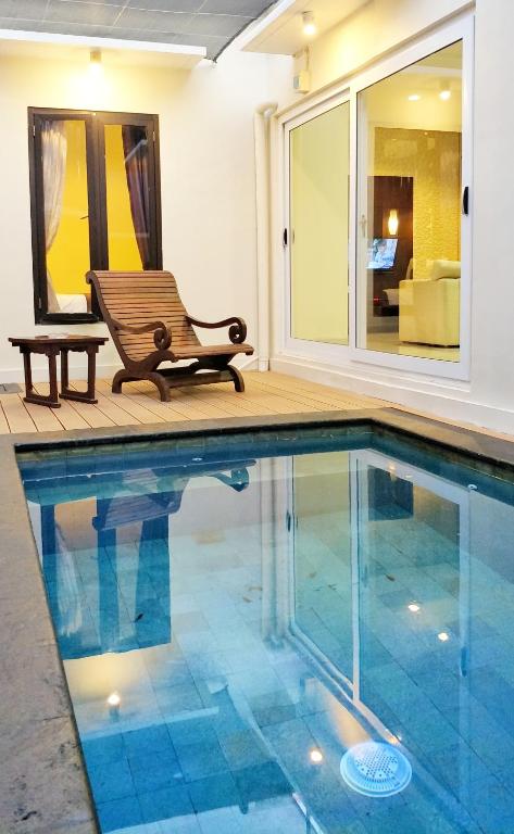 Nestled in the heart of Jimbaran, this villa invites you to indulge in a luxurious escape featuring a private outdoor pool. Enjoy seamless connectivity with complimentary WiFi while being just 3.3 miles from the iconic Rock Bar. Step into a haven of comfort where the villa boasts air conditioning, a spacious terrace, and a cozy seating area. Relax in the living room equipped with a flat-screen TV, and whip up delicious meals in the fully stocked kitchenette complete with a microwave and refrigerator. Refresh in the elegant bathroom, which includes a bath or shower, hairdryer, and complimentary toiletries, all while soaking in stunning pool views from your room. At this villa, delight in the lush garden, unwind in the shared lounge, and make use of the well-appointed shared kitchen. Explore with ease using our car hire, shuttle service, and airport transfer options, available for an additional fee. Enjoy the convenience of room service and daily housekeeping, along with complimentary parking.