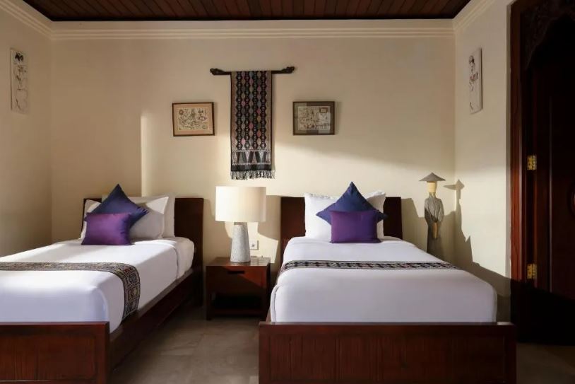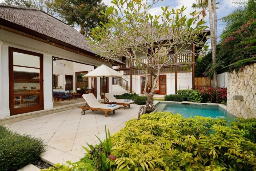 Situated within a luxury villa compound in the greenest part of Jimbaran, Villa is a three bedroom family pool villa accentuating the harmonious fusion of traditional Balinese with contemporary villa living. Dispersed over two stand alone pavilions linked by a well manicured T-shaped garden courtyard, the spacious living quarter houses a homey living room, a dining area with a modern kitchen, whilst the sleeping quarter occupies two floors of the second pavilion. Completing an idyllic villa living experience is the outdoor pool in the center of the garden courtyard. Tucked behind a gated compound, your security and total privacy staying in our villa are guaranteed at all times. With the famous stretch of white sand that is Jimbaran beach only five-minute walk away, this villa promises to be an unforgettable Bali family escapade.