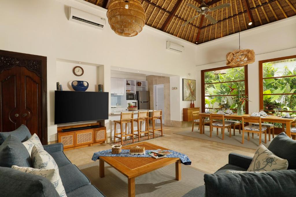 Situated in the heart of Jimbaran,this villa is just a short stroll from the beautiful beach. This cozy villa is not just a comfy place to stay – it's your gateway to the wonders of Jimbaran. Approaching Villa Edward, the inviting blend of traditional thatched roofs and classic American charm welcomes you into an indoor-outdoor haven. The villa itself is thoughtfully divided into two distinct buildings—the living area and the sleeping area—with the pool and patio nestled in between.