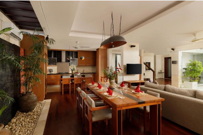 Escape to our villa in Jimbaran, where every detail is meticulously crafted to ensure an unforgettable vacation. Experience a seamless blend of Scandinavian elegance and contemporary comfort, offering a unique stay in Bali. Upstairs, a versatile open area serves as a sitting room and mini bar, ideal for relaxing while soaking in breathtaking views of the surroundings. Whether sipping cocktails or simply enjoying the ambiance, this space adds an extra touch of luxury to your stay. The master bedroom and second bedroom on the first level exude elegance, each with ensuite bathrooms featuring a bathtub, shower area, and discreetly positioned toilet area behind the sink. The second bedroom, similarly designed with twin beds and a comfortable couch, offers convenience and is situated to the left of the layout. On the second level, the third bedroom provides a private and serene retreat, ensuring tranquility throughout your stay with a bathroom that maintains sophistication and functionality.