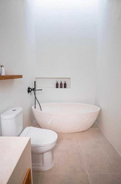 This stunning new Mediterranean villa in Jimbaran boasts 200 square meters of luxurious living space. With three bedrooms, each with an opulent en-suite bathroom, and a breathtaking rooftop, it offers elegance and sophistication. Enjoy the cozy closed living and dining area, fully equipped kitchen, storage, washing machine parking, and a private pool—a perfect sanctuary to relax and unwind just minutes from the beach.