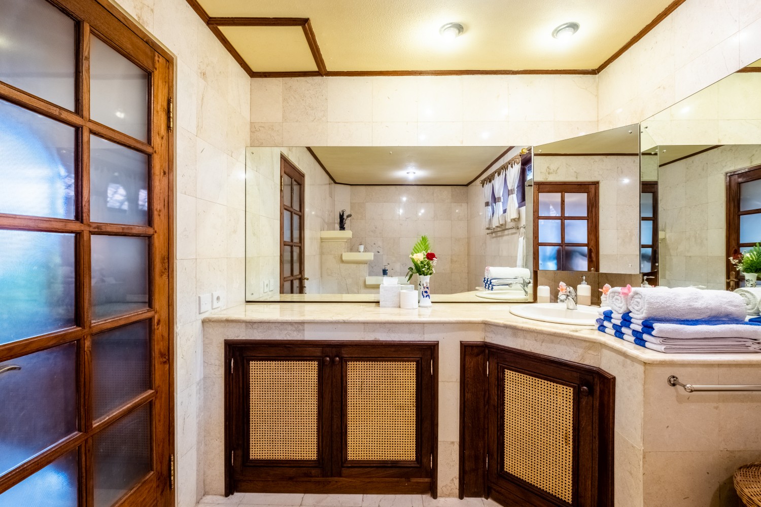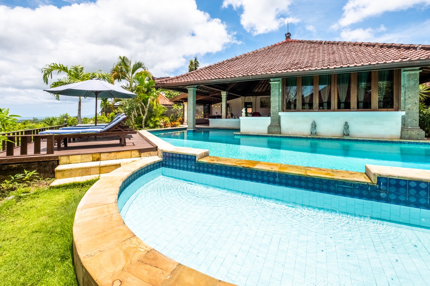 Featuring air-conditioned accommodations with a private pool, mountain vistas, and a charming patio, this villa is located in Uluwatu. The villa offers views of the pool and is situated 3.5 km from Garuda Wisnu Kencana and 5.5 km from Samasta Lifestyle Village. Guests can enjoy the sun terrace, as well as complimentary WiFi and private parking. This expansive villa includes 4 bedrooms, 1 bathroom, high-quality bed linens, towels, a flat-screen TV with satellite channels, a dining area, and a fully equipped kitchen. A balcony with sea views adds to the appeal, and the property provides a private entrance for enhanced seclusion. Guests can also take advantage of the barbecue facilities available on-site.