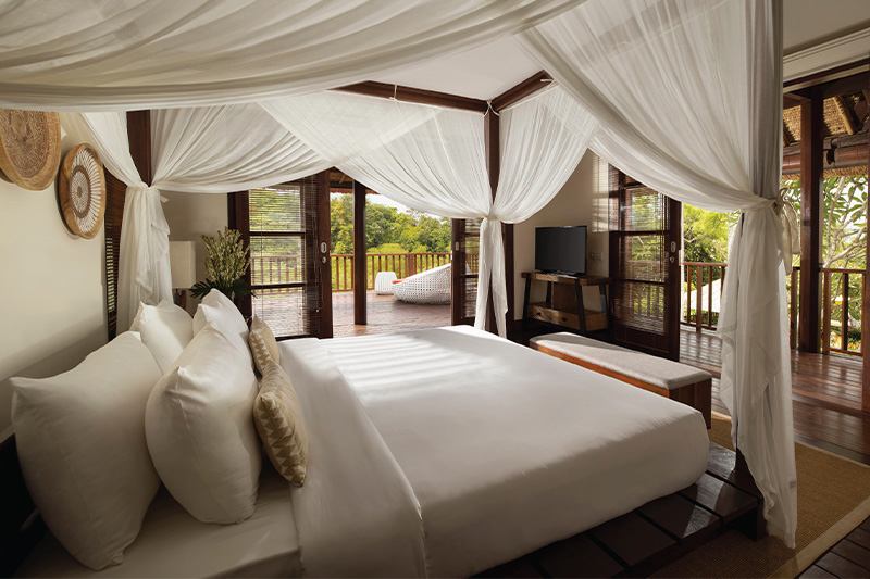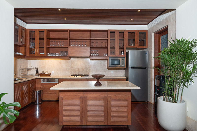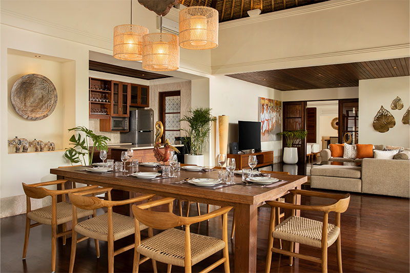 Perched on the limestone hills of Jimbaran, this villa features three pavilions surrounding a lush garden courtyard with a private pool, gazebo, and lounge area. Just a five-minute walk from Jimbaran Beach, it’s the ideal tropical retreat for families or groups. Each pavilion blends Balinese charm with modern comforts, including a master bedroom with a terrace offering views of the hillside and garden. The villa is close to Jimbaran seafood bay and Samasta Lifestyle Village, offering privacy and security in a gated compound.