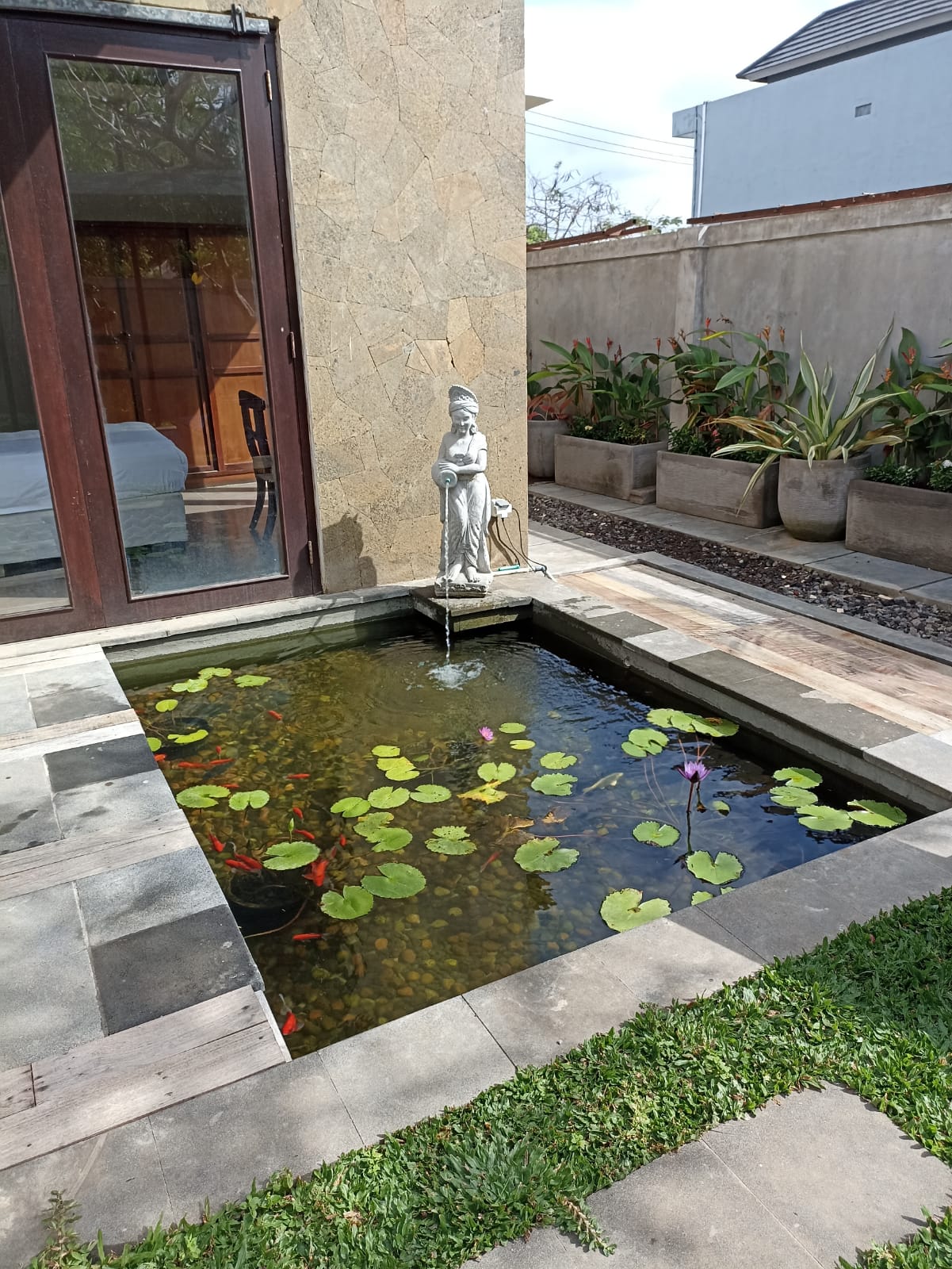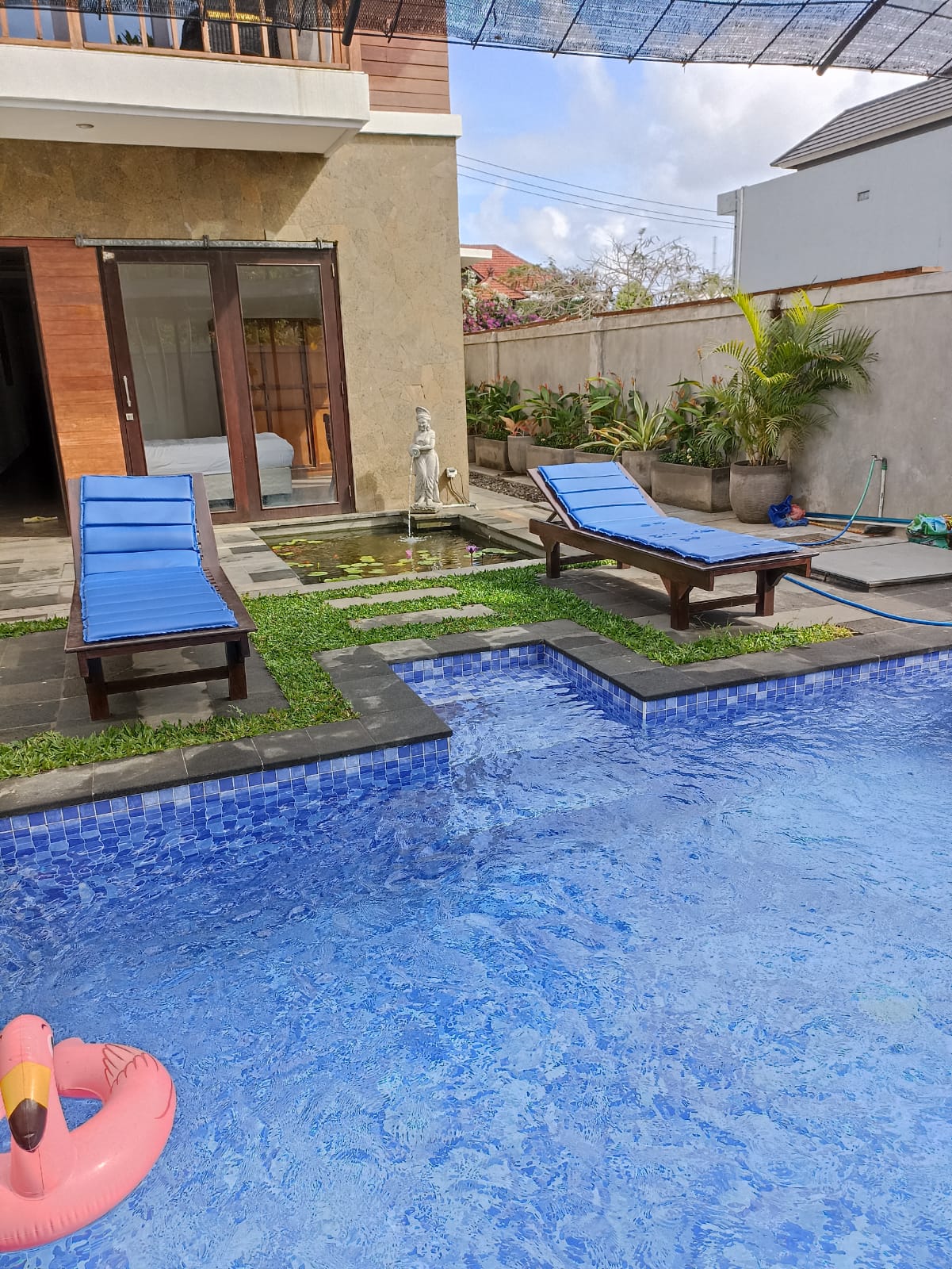 Welcome to our exquisite villa located in the prestigious Puri Gading area of Jimbaran, Bali. Perfectly situated near Taman Rama School, Pepito Supermarket, Sidewalk mall, GWK statue, Balangan beach, and Dreamland beach, this villa offers convenience and luxury in one of Bali's most sought-after neighborhoods. Spanning across 225 square meters of prime land, this villa features a thoughtfully designed layout that includes two bedrooms with en-suite bathrooms located upstairs, two additional bedrooms sharing one bathroom downstairs, a maid's room with an external bathroom, a refreshing swimming pool surrounded by a fish pond, fountain, and lush garden. Whether you're looking for a serene family home or a vacation retreat, this villa offers everything you need for comfortable and luxurious living in Bali. Embrace the tranquility of Jimbaran and experience the best of Bali's lifestyle. Contact us today to secure your stay in this exceptional villa.
