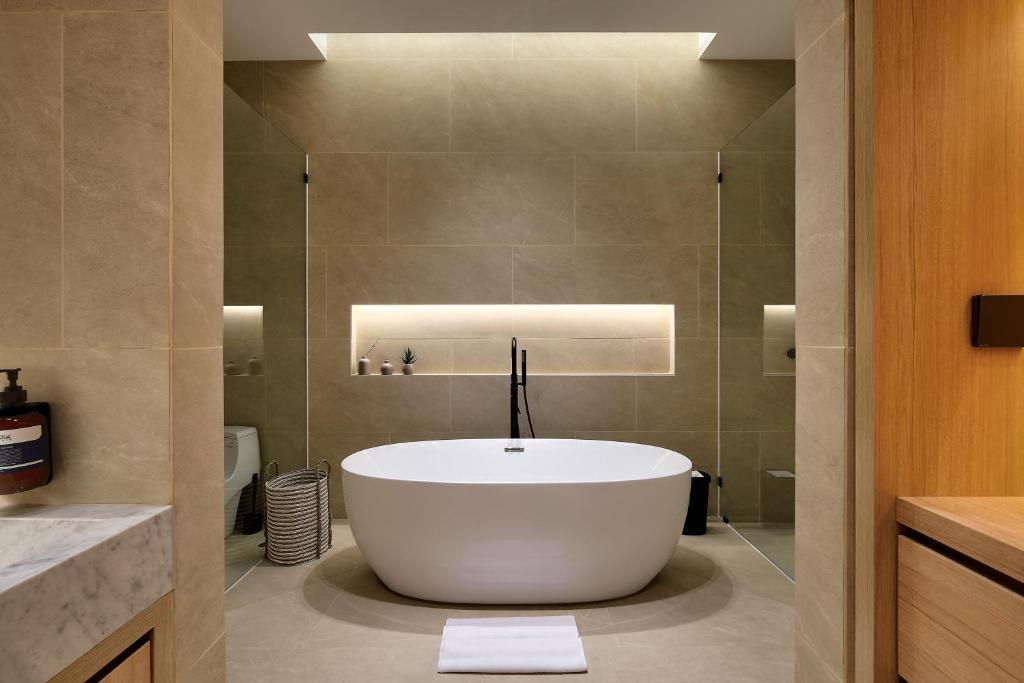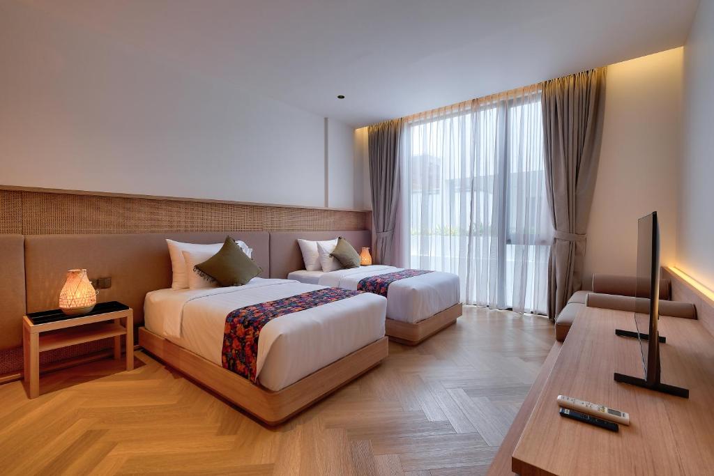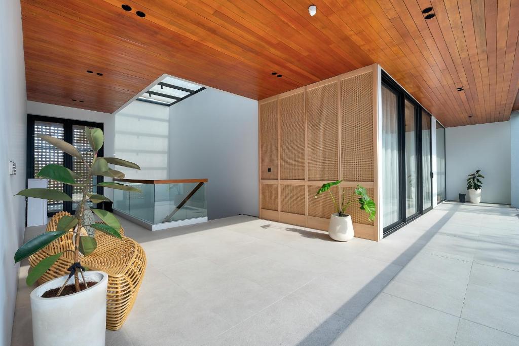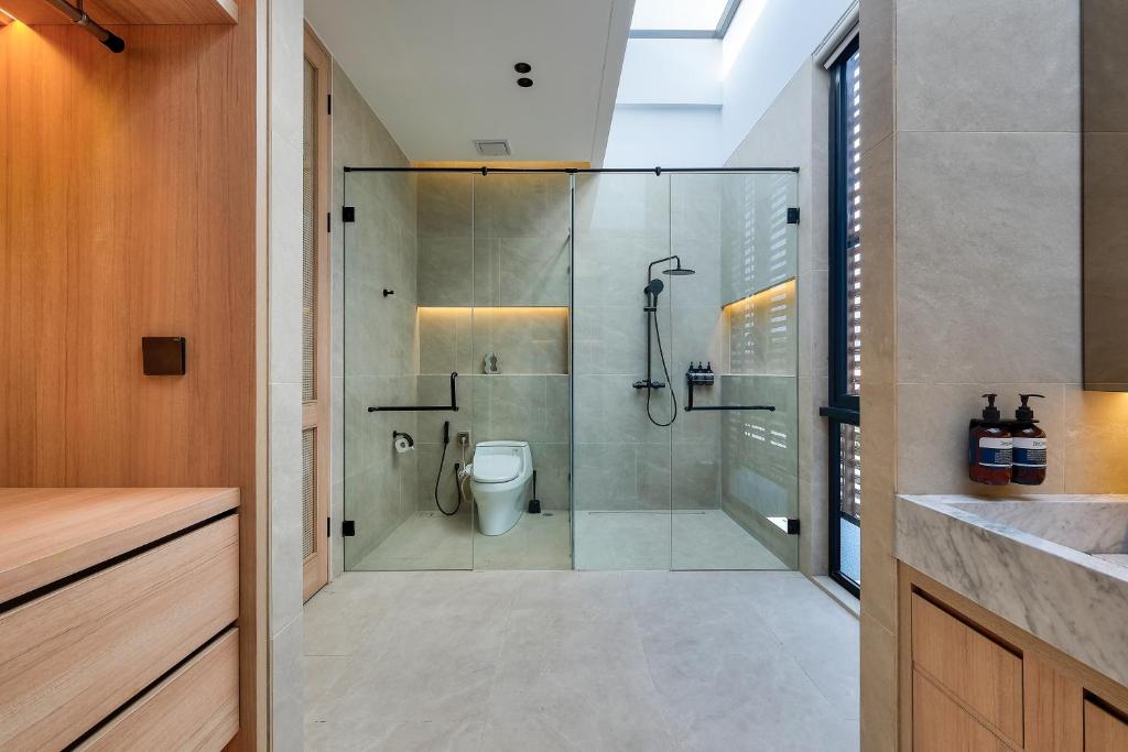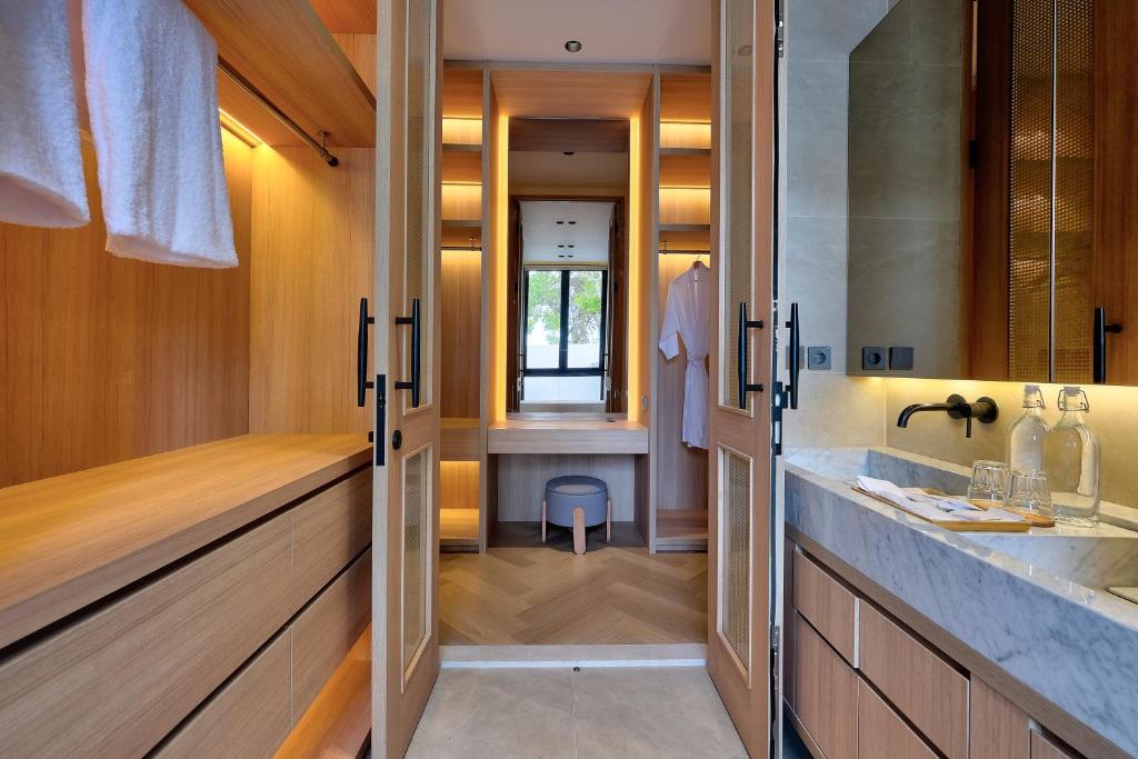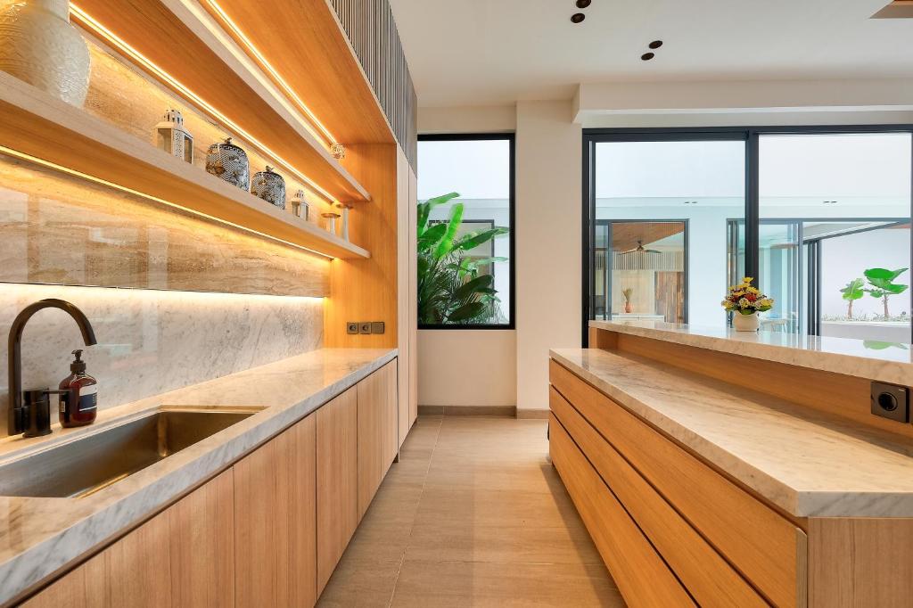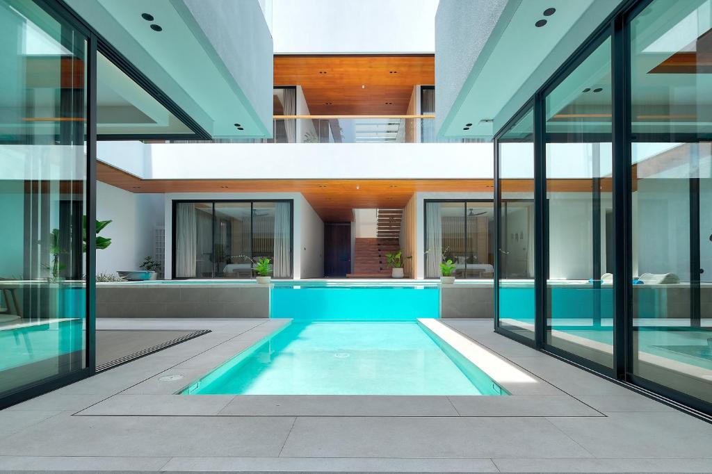 The villa features six bedrooms spread across two floors. Two of the guest rooms are located on the ground level with direct pool access, ideal for guests who prefer to avoid stairs