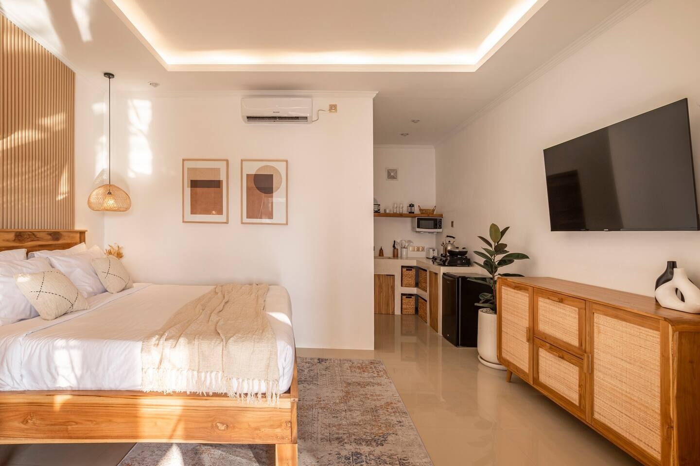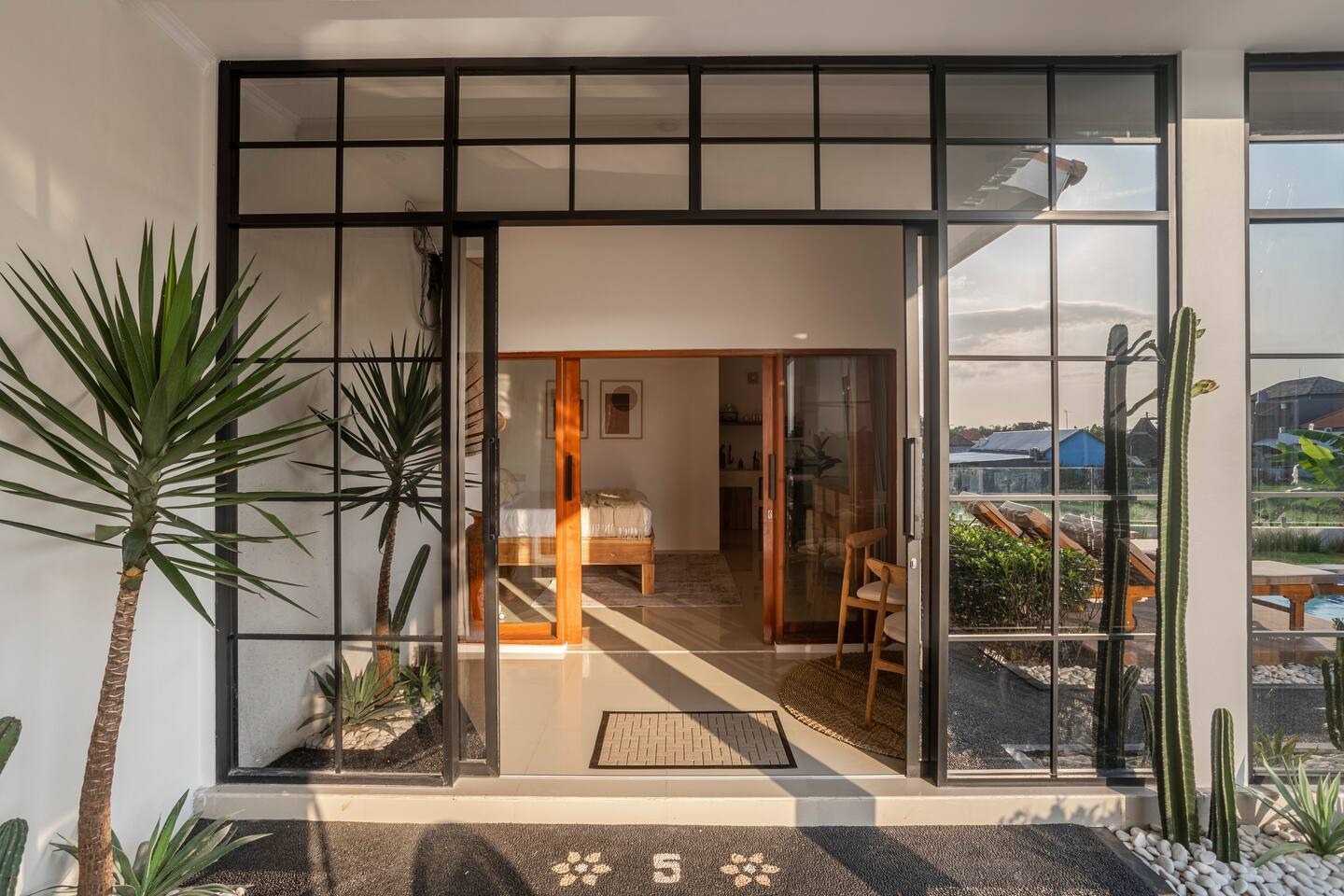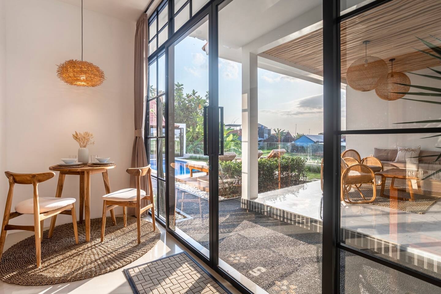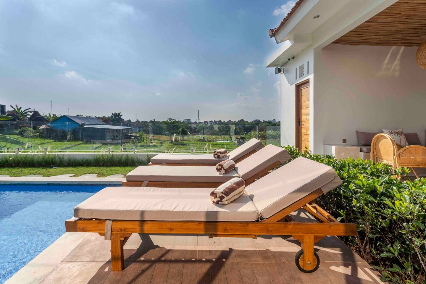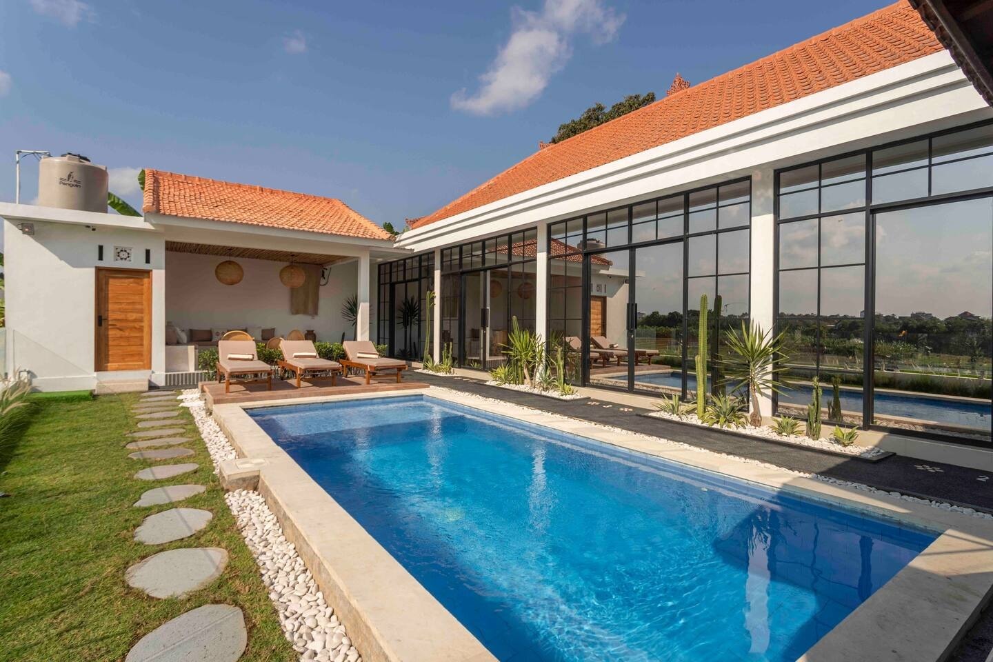 The area and swimming pool are shared with 5 apartments. All guests have enough space by the pool and in the lounge area. Quiet neighborhood, free from transport and construction noise. Just 5 minutes from Canggu's popular spots.