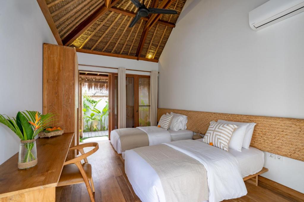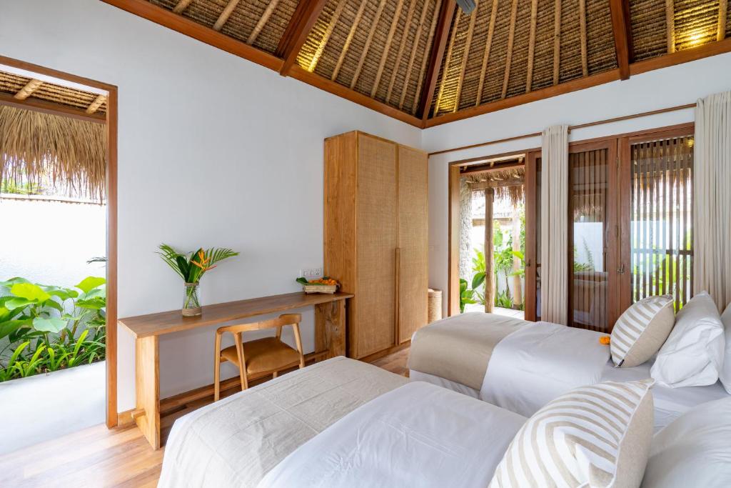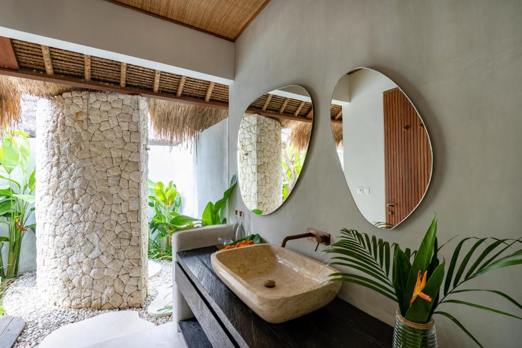 Once you step through the meticulously handmade Bali limestone walls you will sense the peace and tranquility of this beautifully designed and crafted villa. Continuing down the white bougainvillea shaded boardwalk leads you past the discretely hidden bedrooms behind slatted timber sliding screens acting as both a privacy barrier and a welcoming breezeway.