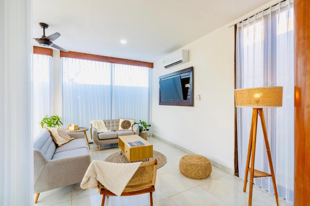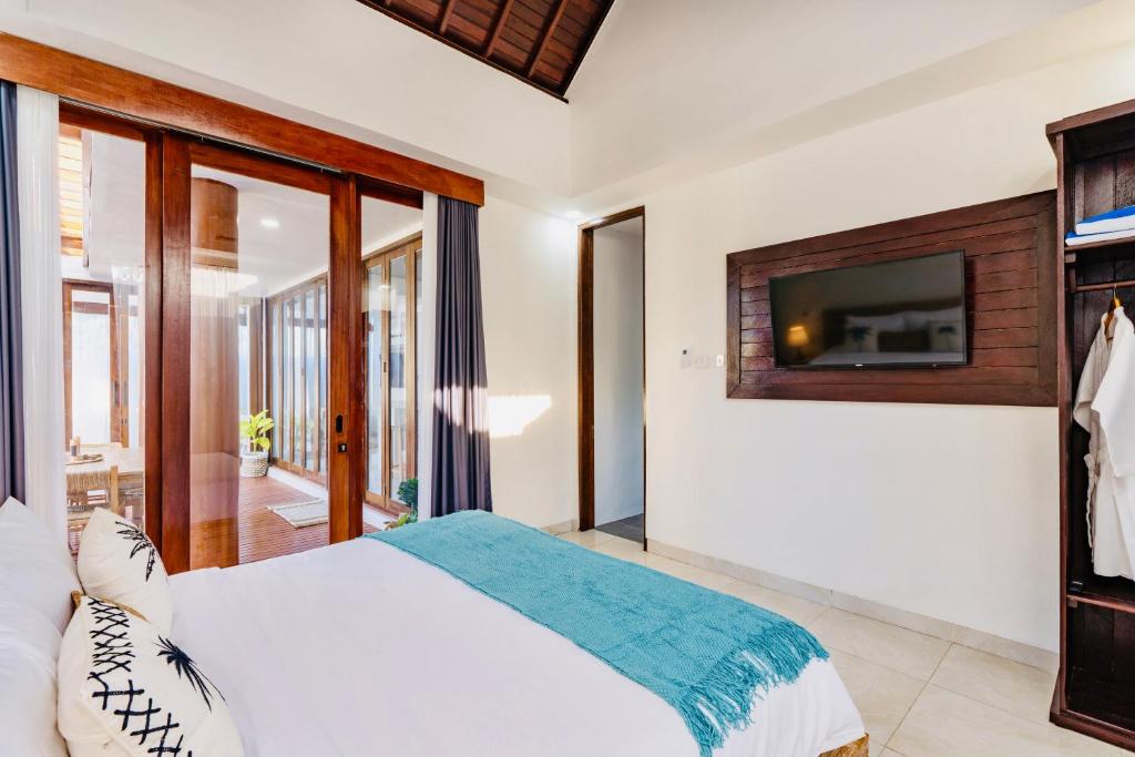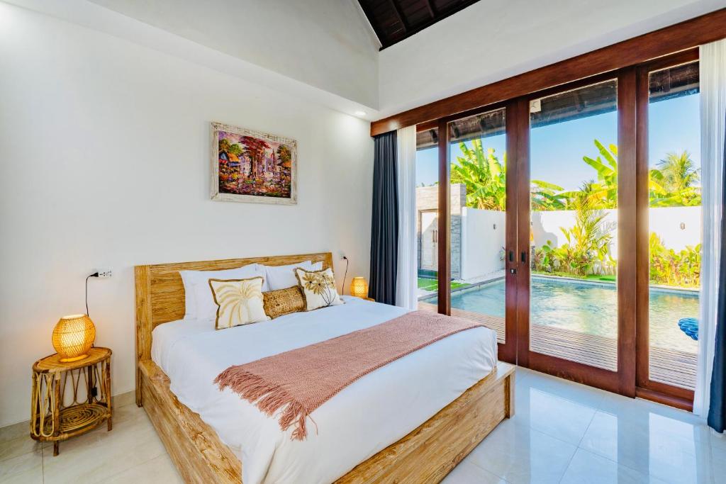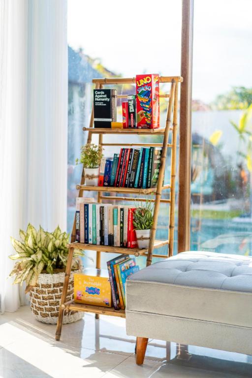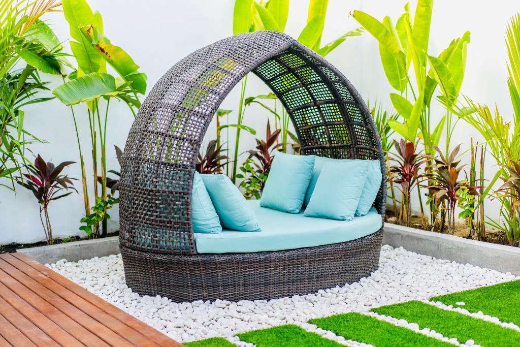 The villa has large family sized pool with a gazebo, hanging chair and deck chairs surrounding the lush gardens.