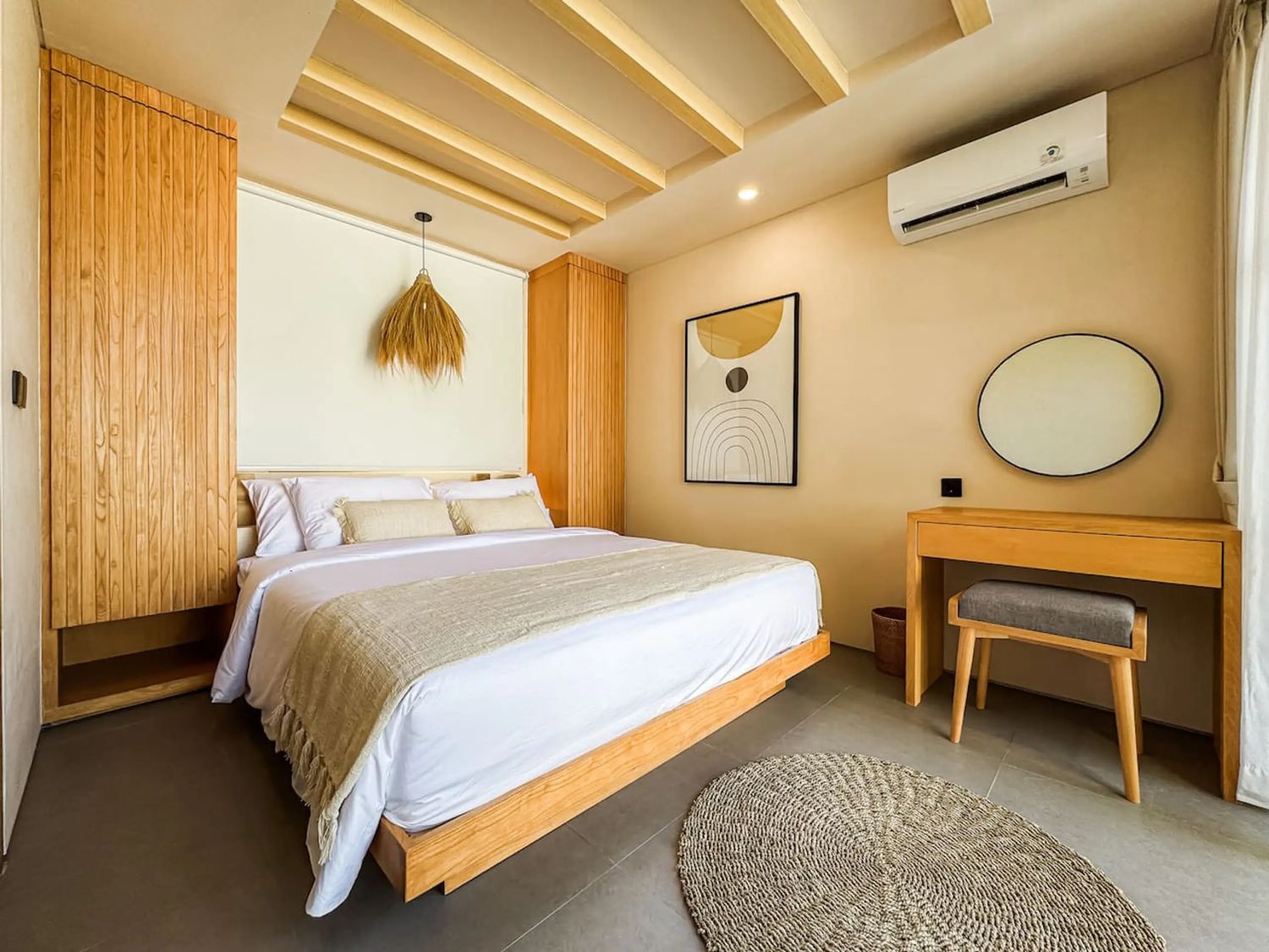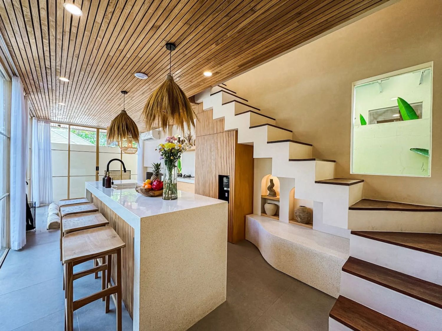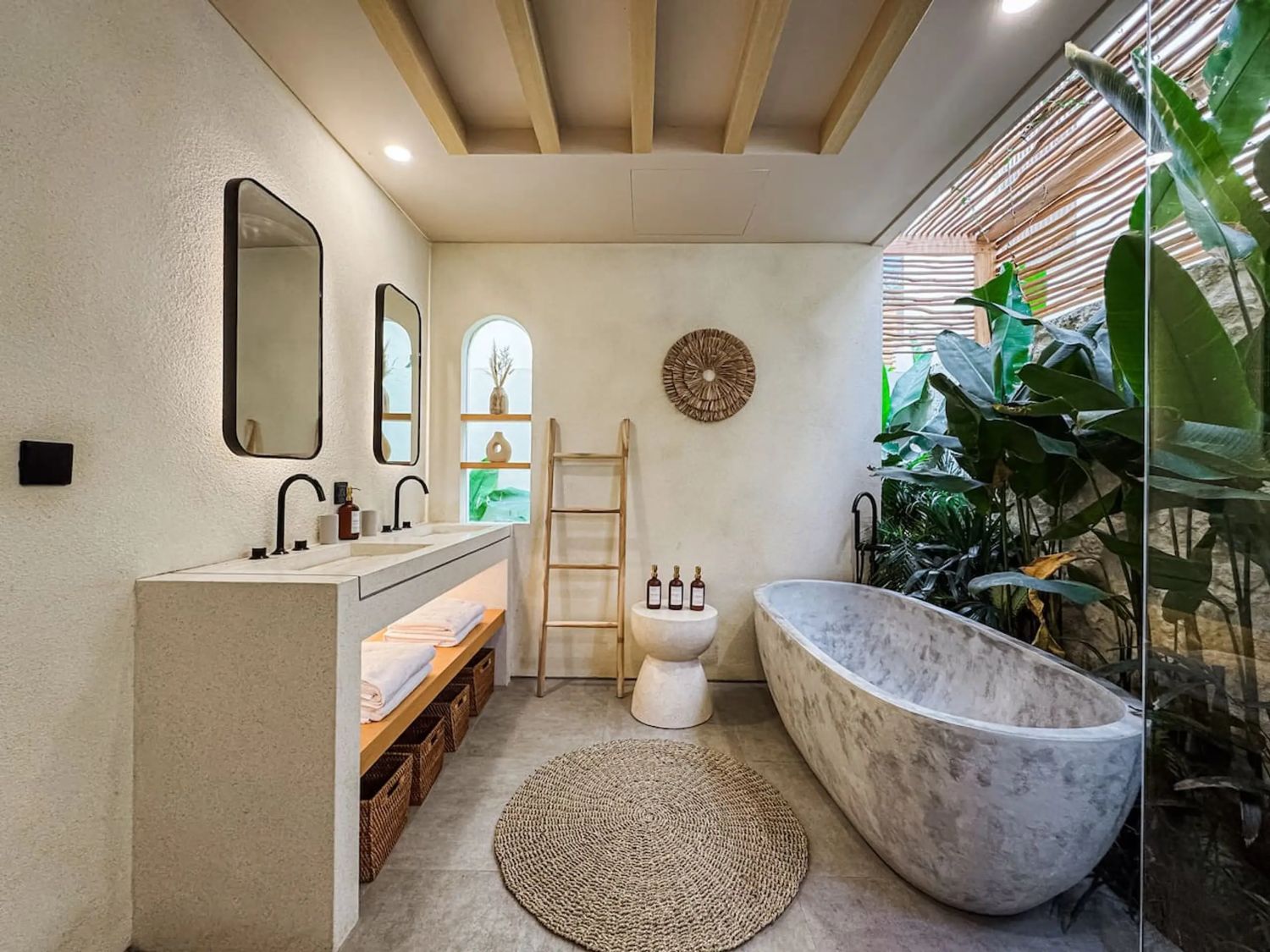 This private tropical escape in this spacious 3-bedroom villa, designed to blend modern comfort with island charm—perfect for families, groups, or friends seeking the ultimate Bali getaway. The villa features three comfortable bedrooms, including one with a private balcony, and a main bathroom with a unique open-air design and bathtub surrounded by nature. At the heart of the property is a private pool set within a lush garden, while the living area offers a cozy sunken sofa and TV lounge for relaxing after a day out. A fully equipped kitchen allows for easy meal preparation, and the rooftop chill-out space provides stunning sea views—ideal for sunset drinks, morning yoga, or stargazing. With its bright tropical design that seamlessly connects indoor and outdoor living, and its convenient location near Uluwatu’s famous surf spots, beaches, cafes, and beach clubs, this villa offers both tranquility and easy access to everything you need for a perfect stay in Bali.