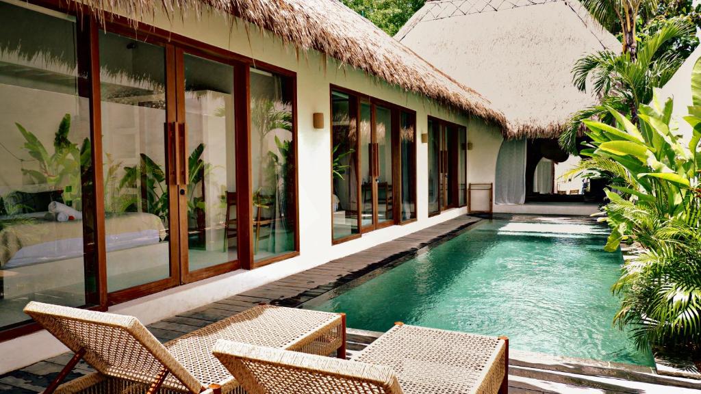This charming 3-bedroom private villa is located in Bingin, Uluwatu, just minutes from Cemongkak Beach and Bingin Beach, offering full privacy in a peaceful tropical setting—perfect for families or friends seeking a relaxing coastal escape. The property features three air-conditioned bedrooms with en-suite semi-open bathrooms, a private swimming pool, an open living area, and a fully equipped kitchen for a comfortable, home-style stay. Ideally situated, it is only 5 minutes from Cemongkak Beach, 10 minutes from Bingin Beach, and 15 minutes from Dreamland Beach, with easy access to nearby cafés, restaurants, surf spots, and beach clubs.