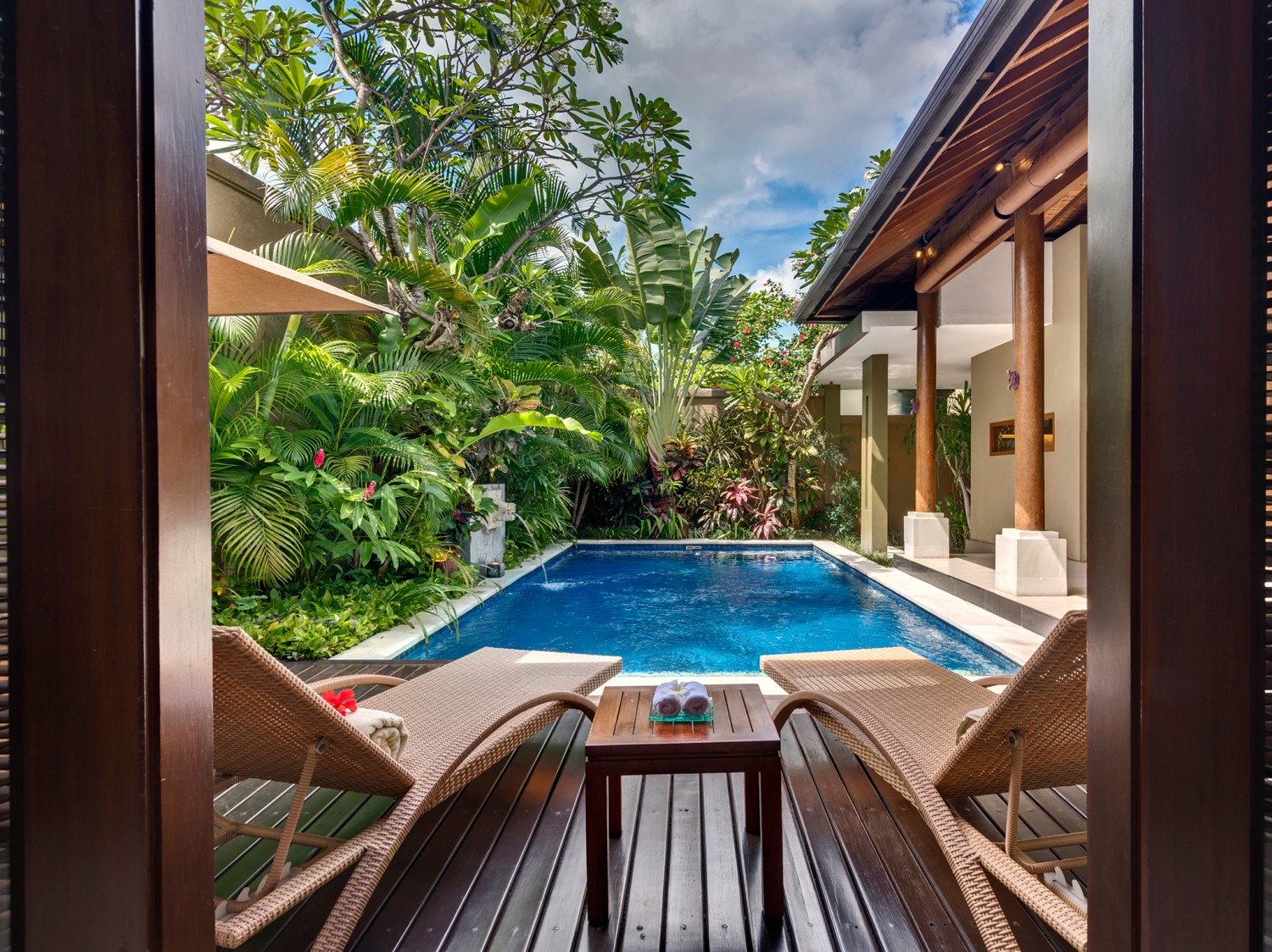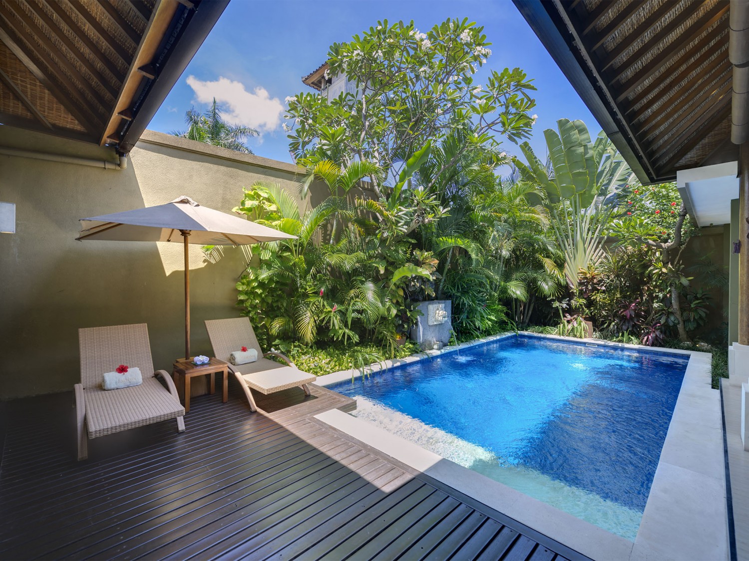 Set within an enchanted courtyard garden brimming with frangipani, heliconia and hibiscus, the villa is the most intimate and also the most romantic, making it an ideal hideaway for honeymooners. Its tranquil setting belies a convenient location right in the heart of Seminyak; a district famed for its sweeping sandy beach, world-class restaurants, trendy bars and designer boutiques.
