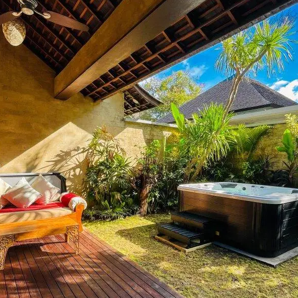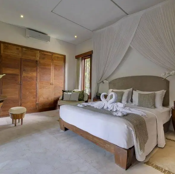 This 10-bedroom villa comprises two spacious villas: Villa 1 is set on a 2000m2 plot and features a 25m free-form private swimming pool, surrounded by a lush tropical garden. It includes a traditional Balinese thatched pavilion that overlooks the pool, complete with a bar, pool table, and cozy seating area. Additionally, there is an open-air dining area designed with architecturally crafted Suar wood, an air-conditioned living area with a baby grand piano, a 75-inch smart TV, various board games, and an Xbox 360. Each bedroom is generously sized and thoughtfully designed for guest comfort. Villa 2, on the other hand, is situated on a 600m2 plot and boasts a 12m free-form private pool. This villa features two main buildings: one housing a master suite, a guest room, a living room, and a kitchen, while the second building includes a rice room with a king-size bed that can convert into twin beds, plus a mezzanine level suitable for children aged 8 and above. The villa is just a few minutes’ walk from the beach, and a dedicated team is on hand to ensure a high level of service throughout your stay.