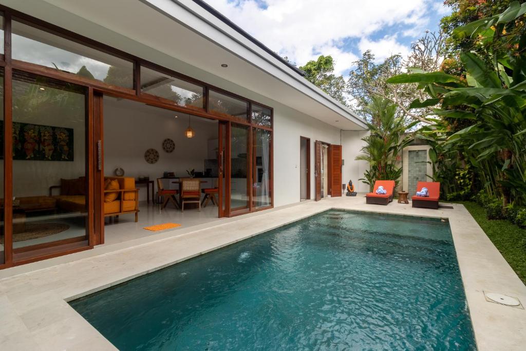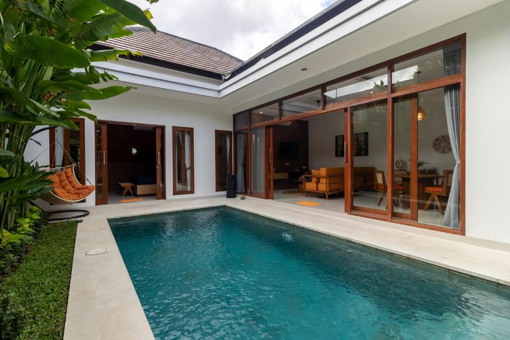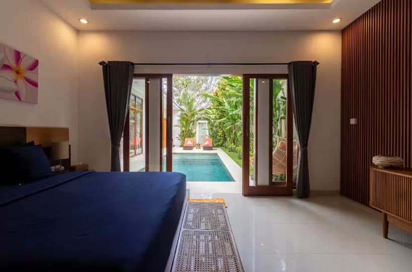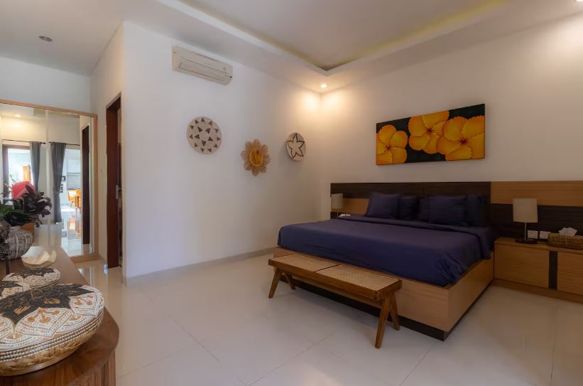 This charming, fully renovated 2-bedroom hideaway in central Seminyak offers a peaceful and comfortable escape with a private pool and a relaxing atmosphere. Both bedrooms feature their own bathrooms and air conditioning, while the enclosed living room, also equipped with AC and a ceiling fan, ensures comfort in any weather. A fully equipped kitchen makes it easy to prepare meals at home, and private parking is available for a scooter or car. Set in a calm, quiet neighborhood, it’s just a 4-minute scooter ride to Double Six Beach and about a 10-minute walk to Seminyak’s lively streets filled with shops, cafés, bars, and restaurants—making it an ideal choice for couples, friends, or small families seeking convenience and tranquility in Bali.