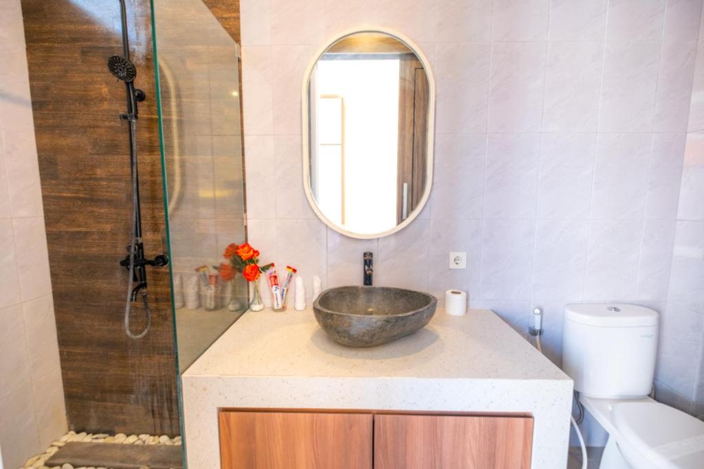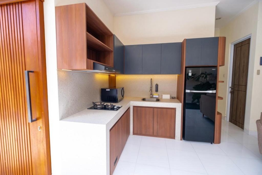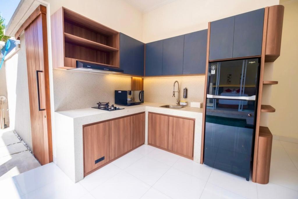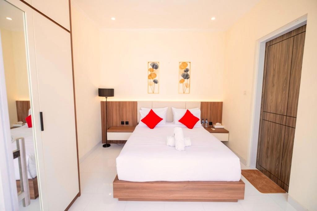 Keep it simple at this peaceful and centrally-located place in Seminyak. Entering the house you can find an open kitchen with all appliances you might need: a table, 3 wooden chairs. It is minimalist concept with a small living room, 2 bedrooms with ensuite bathroom looks out over a swimming pool. The Pool area has beanbags for sun baking in all day sunshine. Nice breeze, a light filled the villas, ideal for a group (max 4 people). There are cafes, restaurant, supermarket nearby.