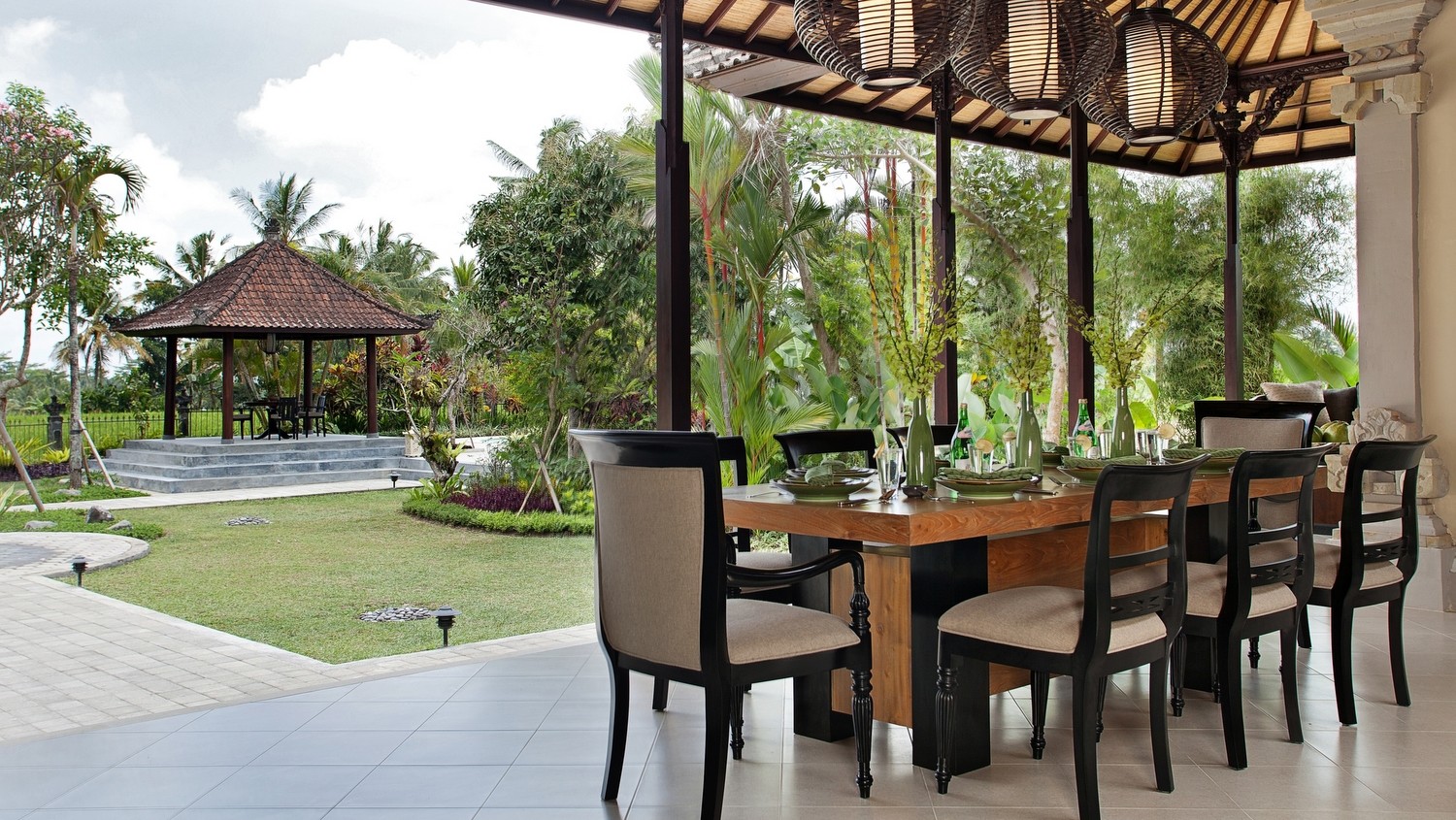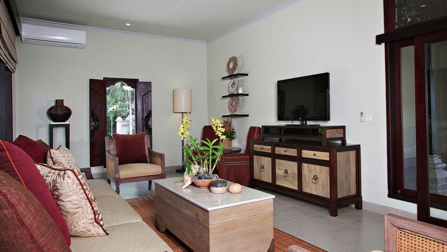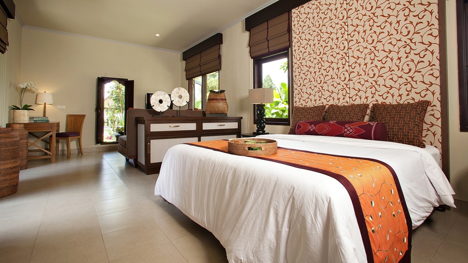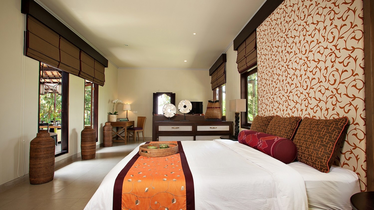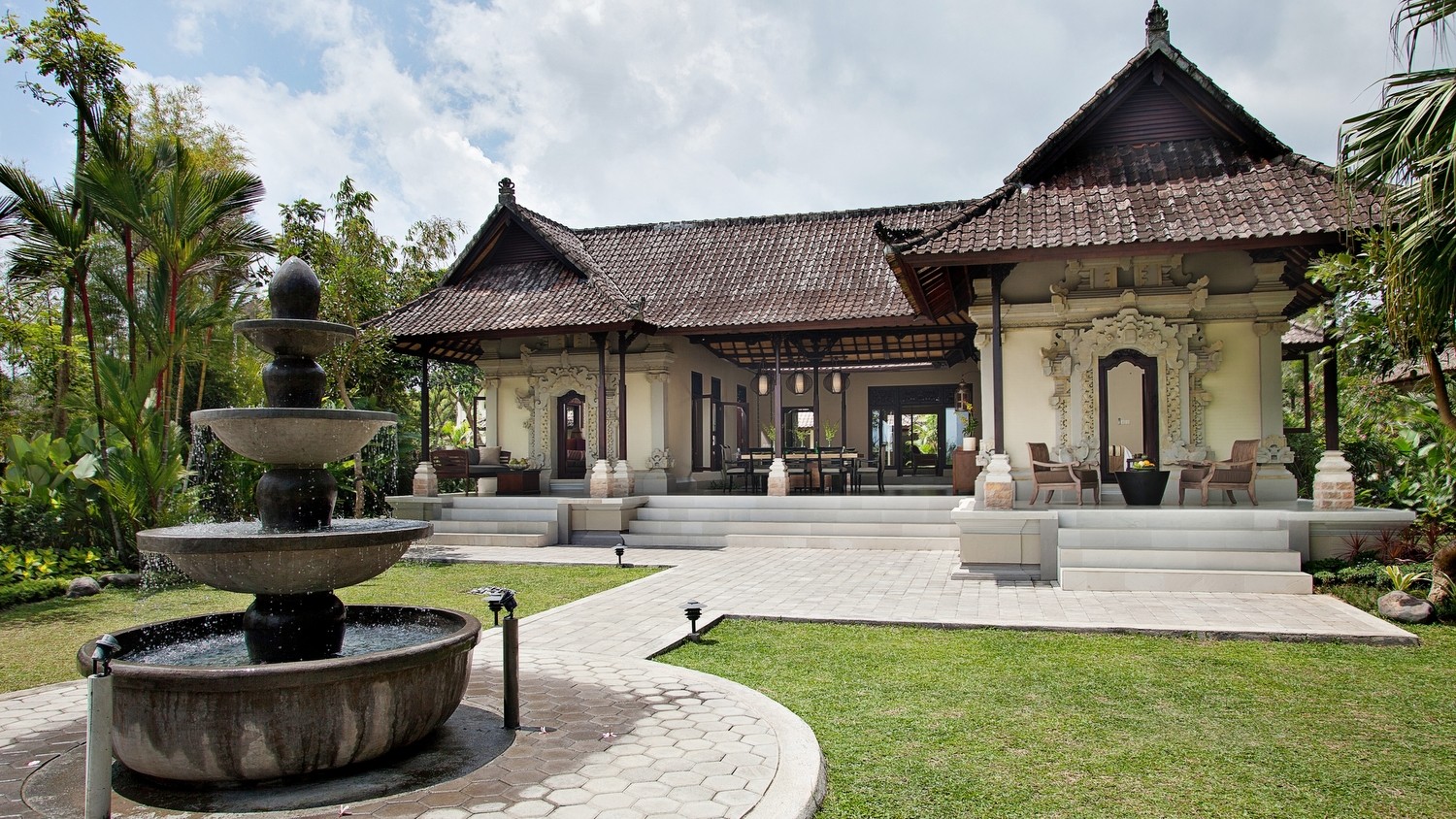 Sited at extensive well-manicured garden fenced with line of coconut tree, this villa is perfect for your tranquil staying accommodation in Bali’s heartland of Ubud. The atmosphere of Balinese culture can be sensed from the time you enter the area which is pictured in the architecture of the building. Detailed sculptured entrance and door enhances the ambiance of local building structure which is beautified by a cascading fountain. The villa itself consists of 1 main bedroom furnished with sofa, working desk and a bathroom with bathtub. Meanwhile, there are two more bedrooms located on the different side of the building. These bedrooms are connected by dining room and living room on the other side which are designed to suit the classic Balinese architecture. This villa is blessed with picturesque view of green rice field enhancing the view of great nature. This peaceful tropical view is also complemented by a lagoon-like pool where you can dip while enjoying the great sky of Bali meeting the endless stretch of green landscape. On the side of the pool, located a traditional Balinese bale where you can start your yoga activity, reading books, or just laying down while enjoying the cool breeze of wind and seeing the vast green paddy fields and coconut trees. The poolside is also perfect to get our tan work started or doing a small barbecue with your loved ones. While you spending your quality time in this villa, professional staff will take care of your needs and inquiries. Security staff is available 24 hours and the housekeeping will take care the rest of tidy up. If you want to explore the area, sightseeing while riding a bike is one of the best activities you could do. You may find local residence living not far from your villa or finding local village temples. Furthermore, the main hub of Ubud is only about 20 minutes and Goa Gajah for about 10 minutes by car.