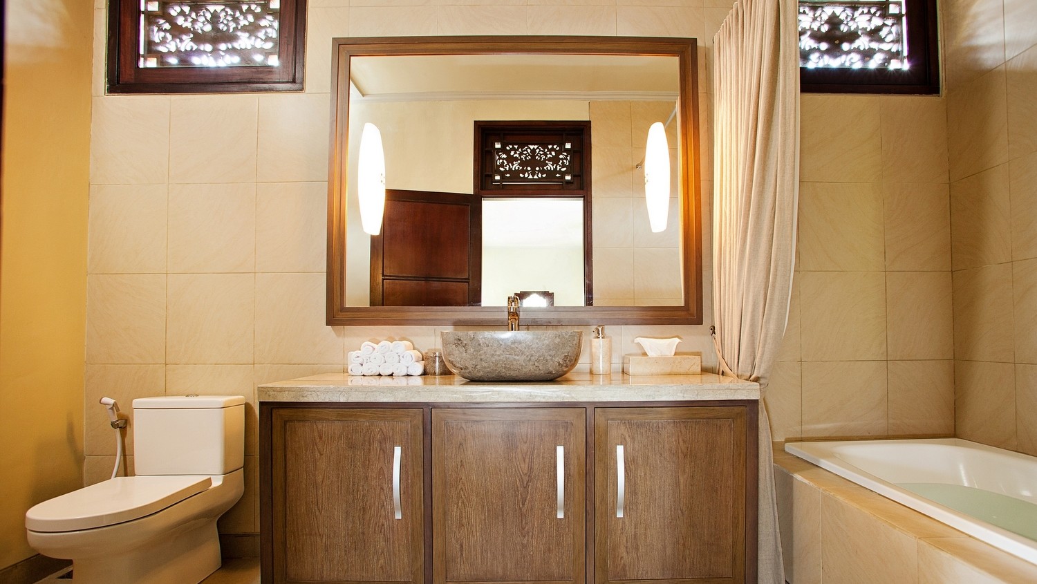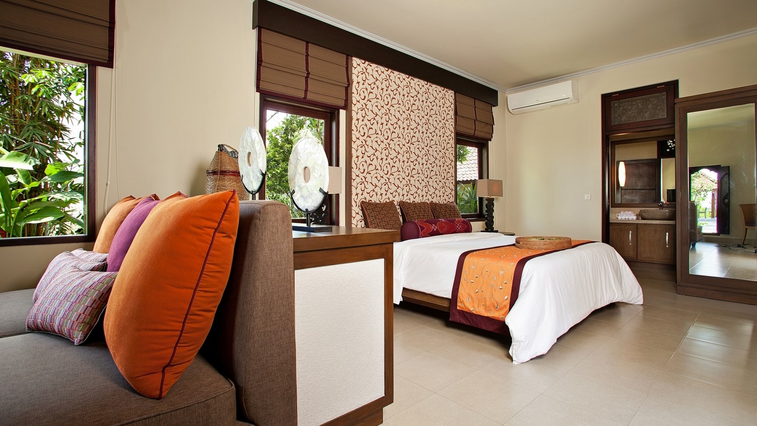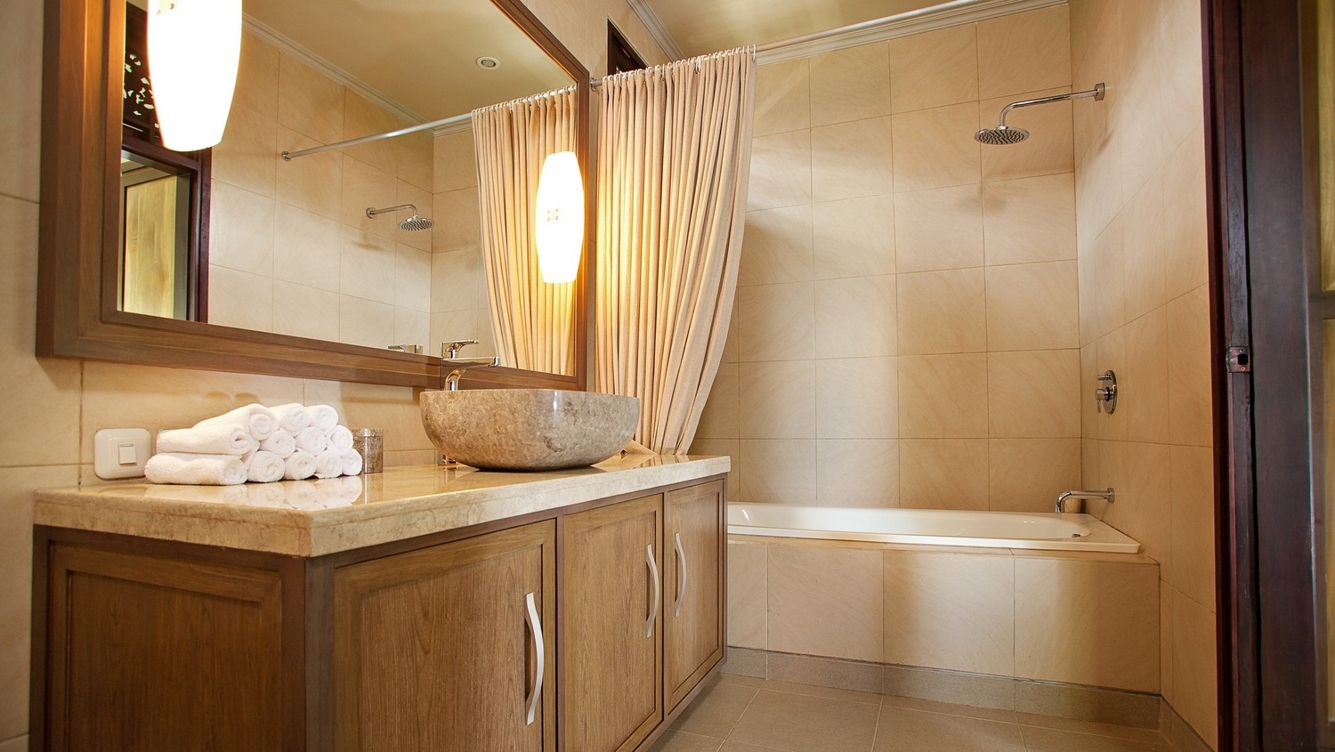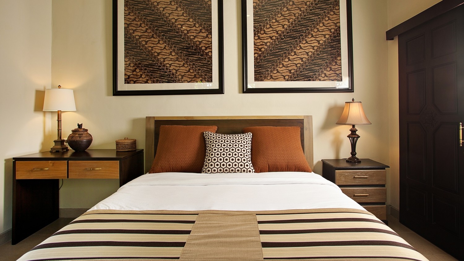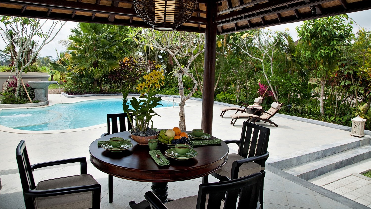 Sited at extensive well-manicured garden fenced with line of coconut tree, this villa is perfect for your tranquil staying accommodation in Bali’s heartland of Ubud. The atmosphere of Balinese culture can be sensed from the time you enter the area which is pictured in the architecture of the building. Detailed sculptured entrance and door enhances the ambiance of local building structure which is beautified by a cascading fountain. The villa itself consists of 1 main bedroom furnished with sofa, working desk and a bathroom with bathtub. Meanwhile, there are two more bedrooms located on the different side of the building. These bedrooms are connected by dining room and living room on the other side which are designed to suit the classic Balinese architecture. This villa is blessed with picturesque view of green rice field enhancing the view of great nature. This peaceful tropical view is also complemented by a lagoon-like pool where you can dip while enjoying the great sky of Bali meeting the endless stretch of green landscape. On the side of the pool, located a traditional Balinese bale where you can start your yoga activity, reading books, or just laying down while enjoying the cool breeze of wind and seeing the vast green paddy fields and coconut trees. The poolside is also perfect to get our tan work started or doing a small barbecue with your loved ones. While you spending your quality time in this villa, professional staff will take care of your needs and inquiries. Security staff is available 24 hours and the housekeeping will take care the rest of tidy up. If you want to explore the area, sightseeing while riding a bike is one of the best activities you could do. You may find local residence living not far from your villa or finding local village temples. Furthermore, the main hub of Ubud is only about 20 minutes and Goa Gajah for about 10 minutes by car.