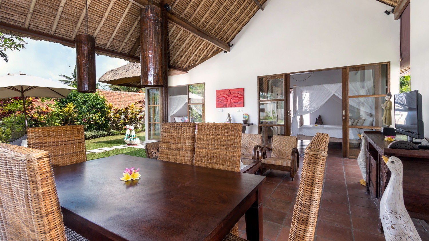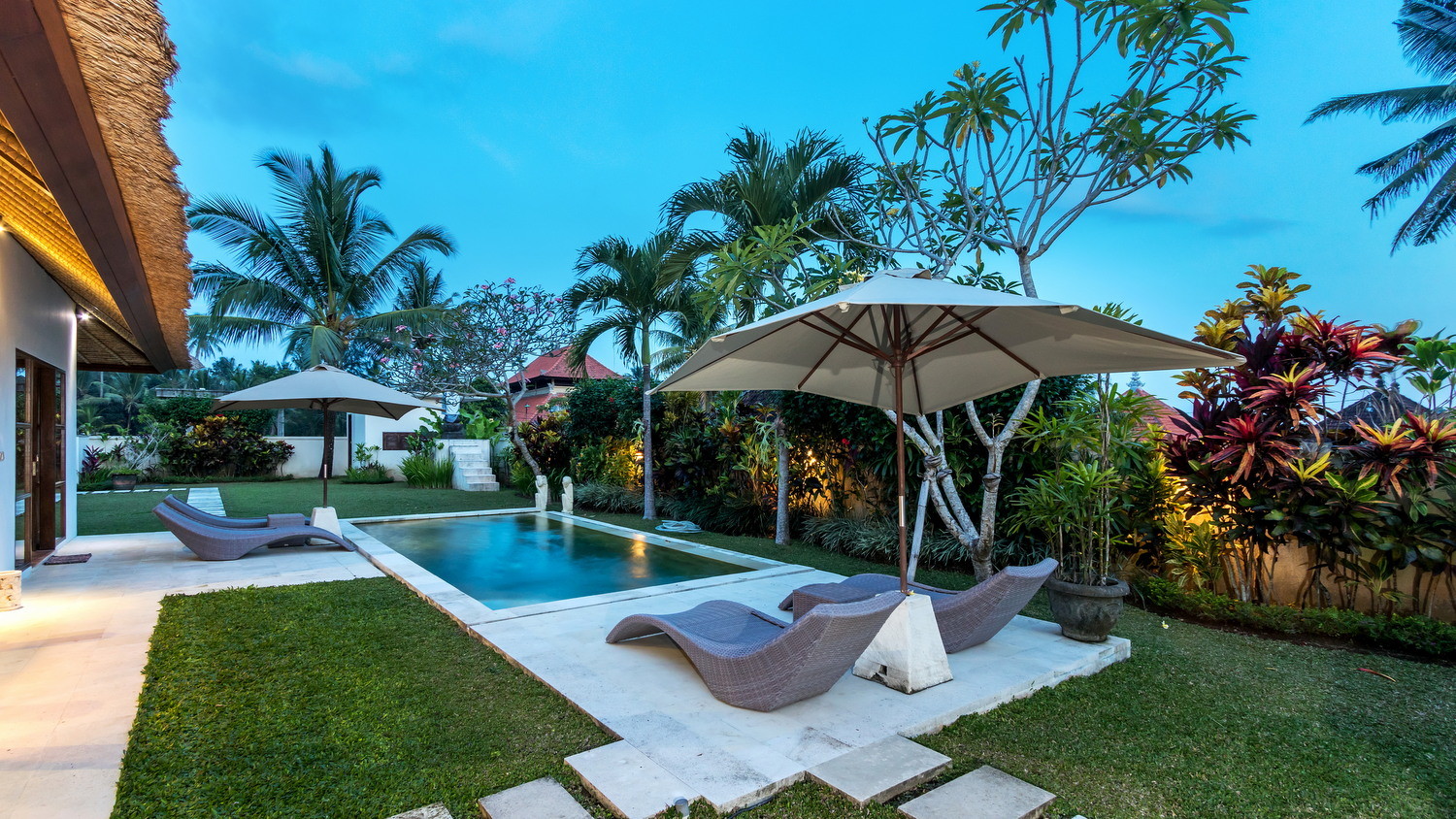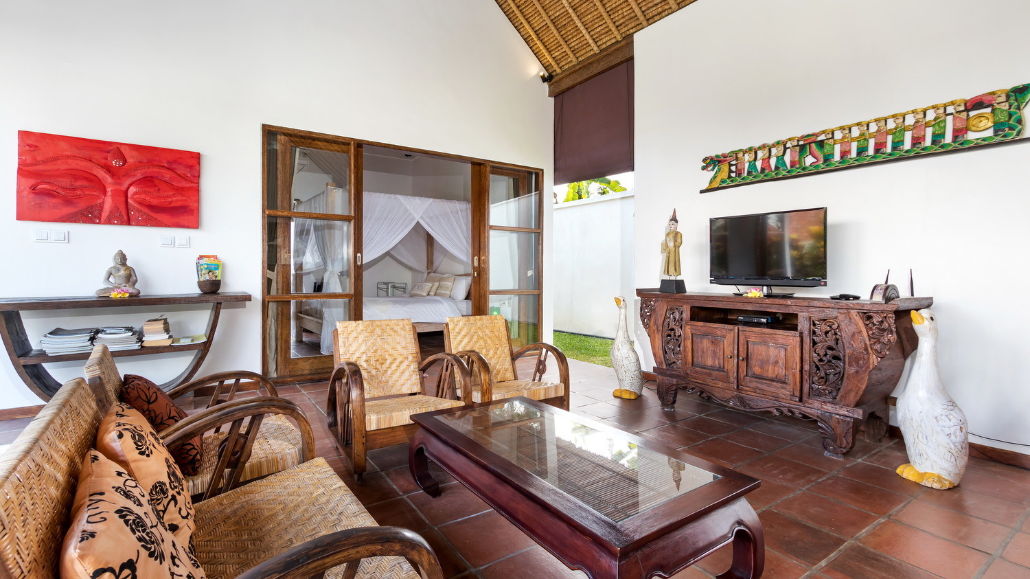 This 3 bedrooms villa is a intimate setting fit for families with children or perhaps a group of friends. The private villa is accompanied with 3 en-suite bathrooms that open directly to its glistening waters! Secluded yet completely open-aired, does not overdo its interior embellishments. With subtle hints of colour from its freshly picked tropical flowers and an eclectic range of wooden art pieces, the villa is warmly welcomes your stay. Spoil your eyes with the glistening water of the private pool. Its cozy grass greenery surrounds the diamond waters of the 8 by 3 meter pool - located right beside the living space, guests won’t pass up the offer for a quick-dip! 4 sunloungers and broad poolside umbrellas are in sync with the calm theme of this home away from home. A total of three air conditioned bedrooms are hosted within this villa - all of which have their own outdoor en-suite bathrooms and queen-sized four-posted beddings. Traditionally styled in contemporary Balinese aesthetics, the plush beds will ensure you a good night’s sleep. With its iconic thatched high-ceilings, the suites’ floor-to-ceiling sliding glass door open toward the rolling greens and glistening pool. This villa is located in peaceful Ubud village of Pejeng. Nearby is a UNESCO World Heritage Site, Goa Gajah, where intricate carvings of menacing creatures and cultural artefacts are to be seen. Bring your party to fine-dine at the immaculate French-cuisine, Cascades Restaurant.