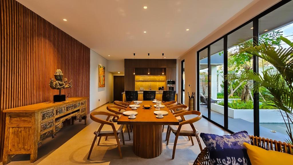 This villa is a stylish 3-bedroom villa in Ubud, blending modern luxury with Balinese charm. Each room features a king bed, private bathroom, AC, and a balcony with pool views. The villa includes a cozy living area, dining space, fully equipped kitchen, private pool, sun loungers, and a guest toilet—perfect for a relaxing stay just minutes from Ubud’s top spots.
