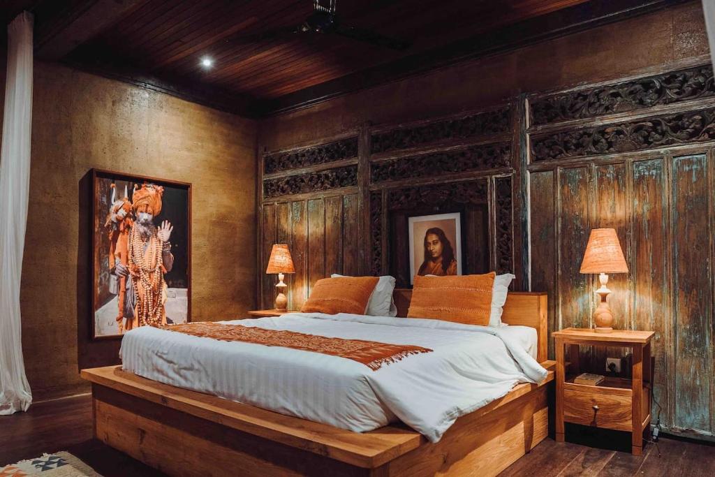 This Villa is one of Bali’s most photographed luxury villas, noted for its highly acclaimed artistry, architecture, and interior design. The villa hosts 4 magnificently appointed bedroom suites, 3 of which have indoor/outdoor oversized stone tubs. 2 Grand lounges, 1 open to nature & overlooking the river & the other is enclosed, air-conditioned and more intimate, perfect for reading, meditating, or cozying up with your love ones. A fully equipped kitchen and alfresco dining area. The spa includes a 10 person steam room, 2 person infrared sauna & flower bath bathing tub, cold plunge, and mini gym with light dumbbells & TRX exercise system, a mini trampoline, and 2 massage beds. On the main level is a spectacular saltwater infinity pool with window portals on the bottom looking down into the spa. The pool depth is 1-1.5 meters. The villa has 3 full time housekeepers, 1 gardener, and 2 villa managers & upon your request will be happy to provide you with complete privacy, but please understand to sustain pristine quality of the villa, the staff must be permitted adequate time to upkeep the villa daily.