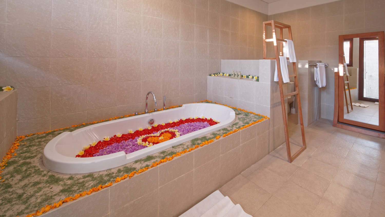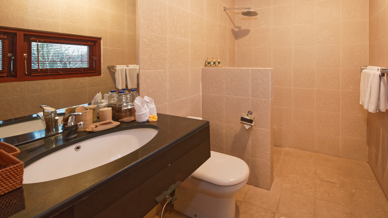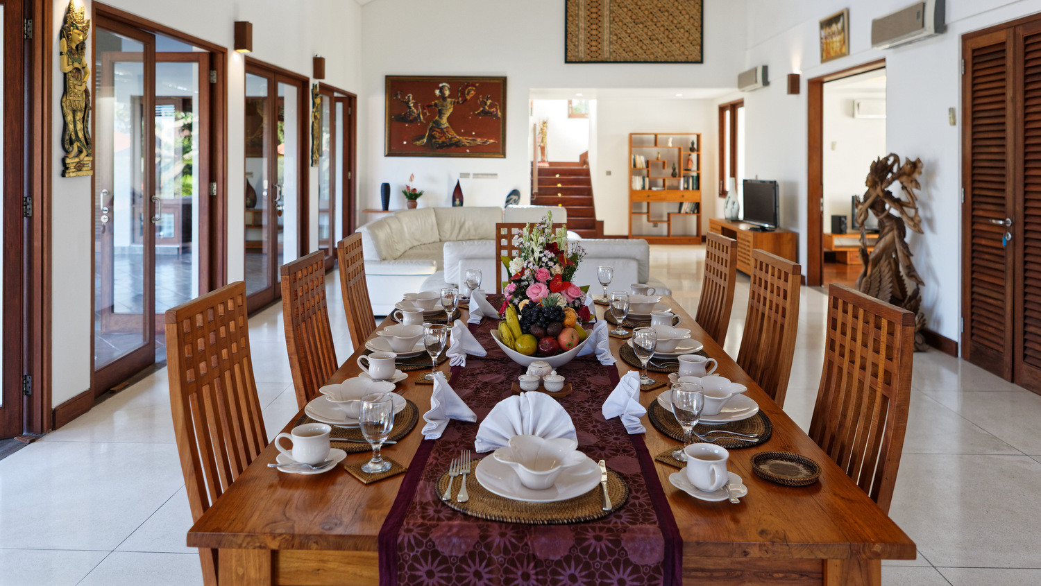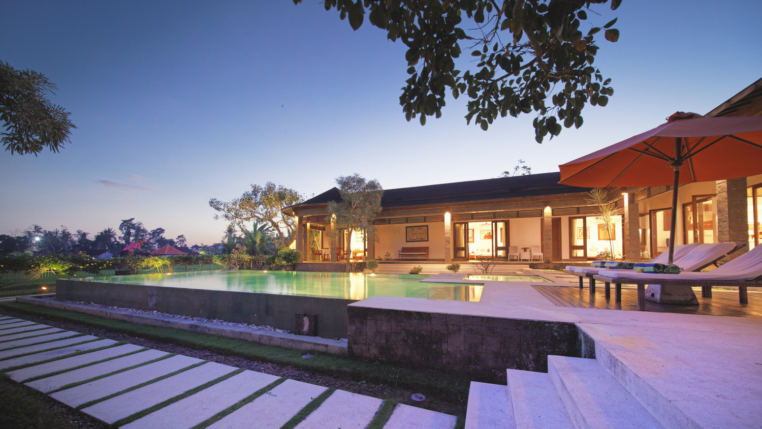 Our open-area-situated the villa is designed perfectly with a modern touch and embraces the idea of being part of the surrounding nature. The green areas around the villa infuse a fantastic feel and atmosphere into the building of the villa itself. With most of these open areas, the villa will definitely comfort you during your retreat time in Ubud. The luxurious features given to the villa along with its beautiful surroundings make this villa the most recommended one to stay in. It has three bedrooms, one of which is a master bedroom, are open into the pool giving a stunning view for you while enjoying the most comfortable corner of the villa. You will never find yourself running out space for your lovely families, as this villa has a huge living area to spend your time together with its additional TV-room just next to the living area. What a perfect movie and family time you would have upon staying with us at our Ubud Private Villa Rental. The huge swimming pool of this villa overlooking the rice fields will spoil you and make you feel the tranquility of this fantastic villa. You can also have a relaxing time with your lemonade in the traditional wooden building which is designed just close to the swimming pool. Every little thing featured in this villa is to bring the best out of the best that the villa can offer and making you experience the best treatment of your precious days in our Ubud private villa.