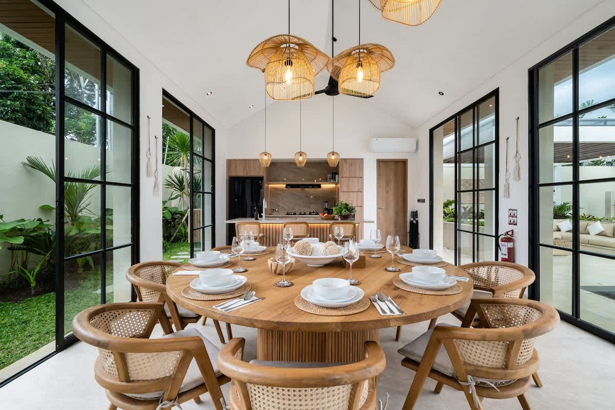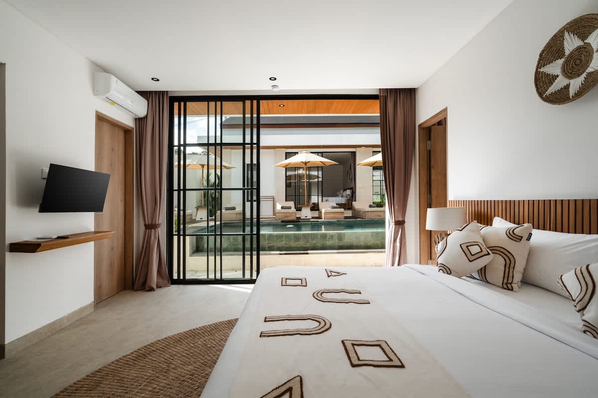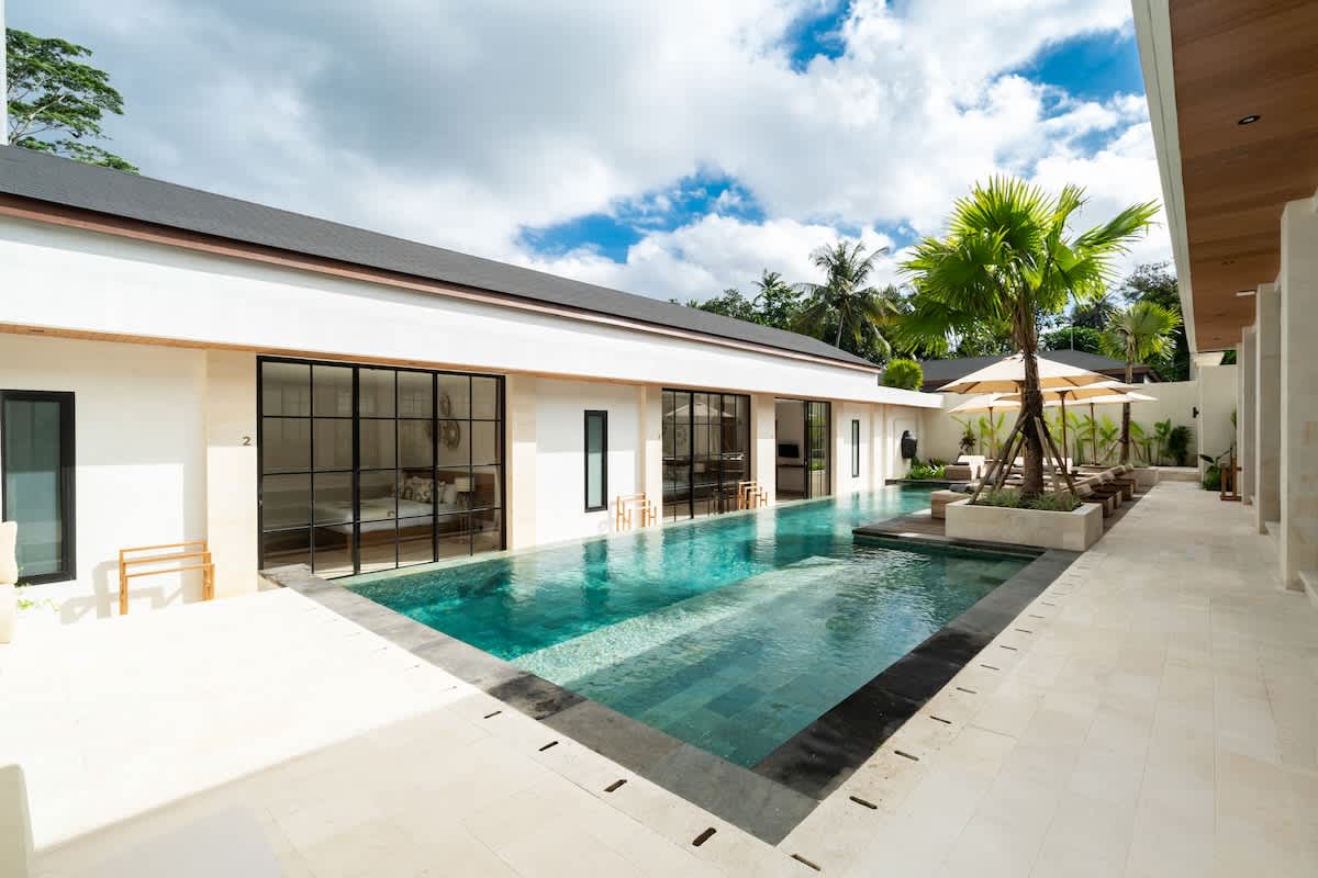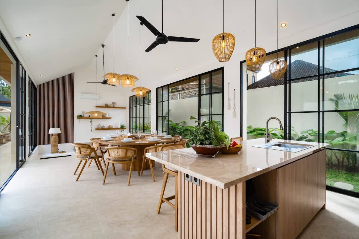 Welcome to this Villa in Pejeng, a stunning 4-bedroom retreat where contemporary comfort meets Ubud's timeless charm. This thoughtfully designed haven offers the perfect sanctuary for families and groups seeking an authentic Balinese experience in the cultural heart of the island. Each of the four bedrooms at this Villa showcases breathtaking pool views, featuring queen-size beds that effortlessly convert to twin configurations for ultimate flexibility. Smart TVs and individual air conditioning ensure modern comfort, while private en-suite bathrooms provide intimate convenience. The master bedroom at the Villa offers something truly special... a semi-outdoor bathtub nestled beneath a charming pergola, where you can soak under the stars. The heart of this Villa reveals an open-plan living space crowned by a cozy sunken living room—perfect for gathering with loved ones. A striking round dining table welcomes parties of eight for memorable meals, while the fully equipped kitchen features a stylish island with bar stools for casual conversations.