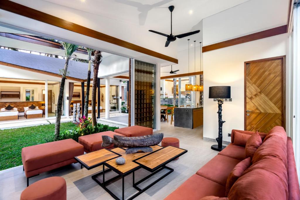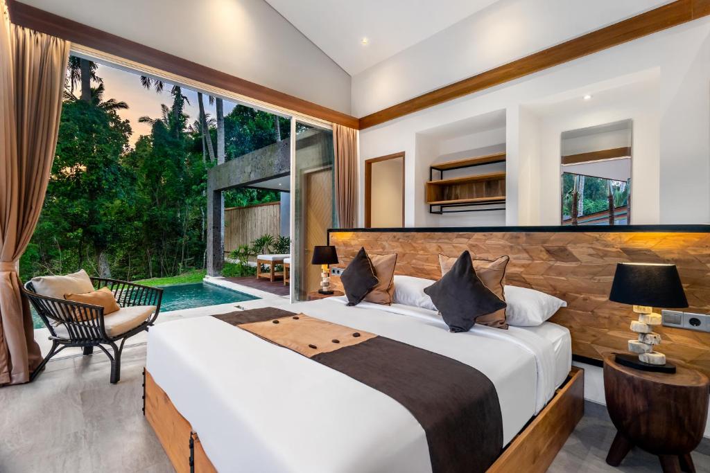 Nestled in the tropical greenery of Ubud, this brand-new modern villa offers tranquility with an infinity pool overlooking a lush valley. Located in Pejeng Kawan village, known for its natural beauty and terraced rice fields, the villa features relaxing spots, a spacious living area, and a fully equipped open kitchen. The 1.4-meter deep infinity pool provides stunning 180° valley views. Set in an 8-hectare garden with large sliding glass doors in every bedroom, the villa offers the perfect blend of peaceful seclusion and convenient access to shops, restaurants, and Bali’s famous Monkey Forest, just a 10-minute drive away.