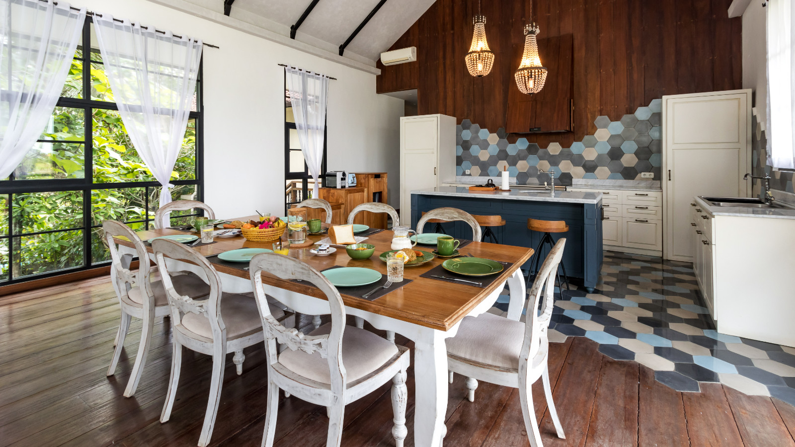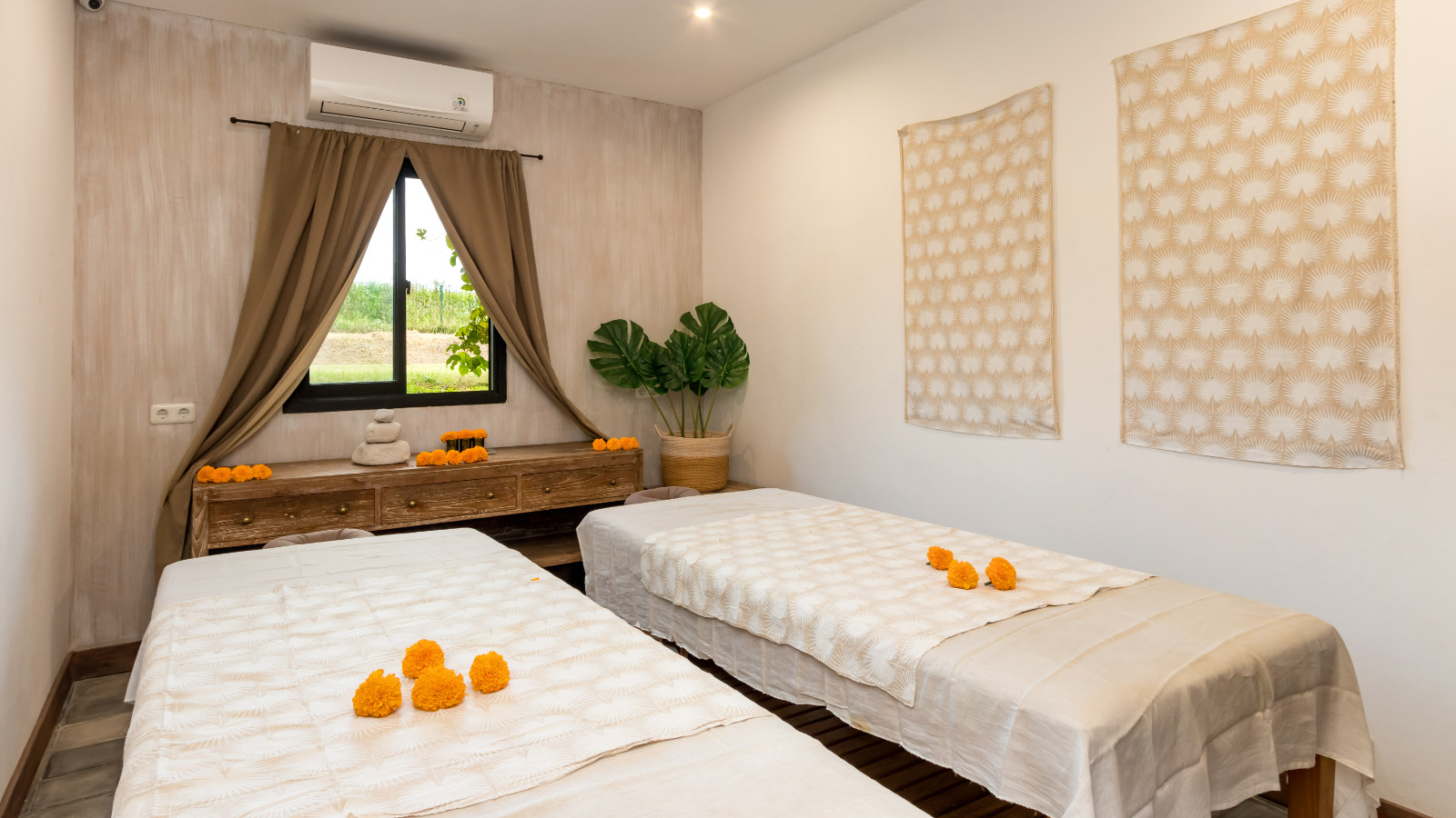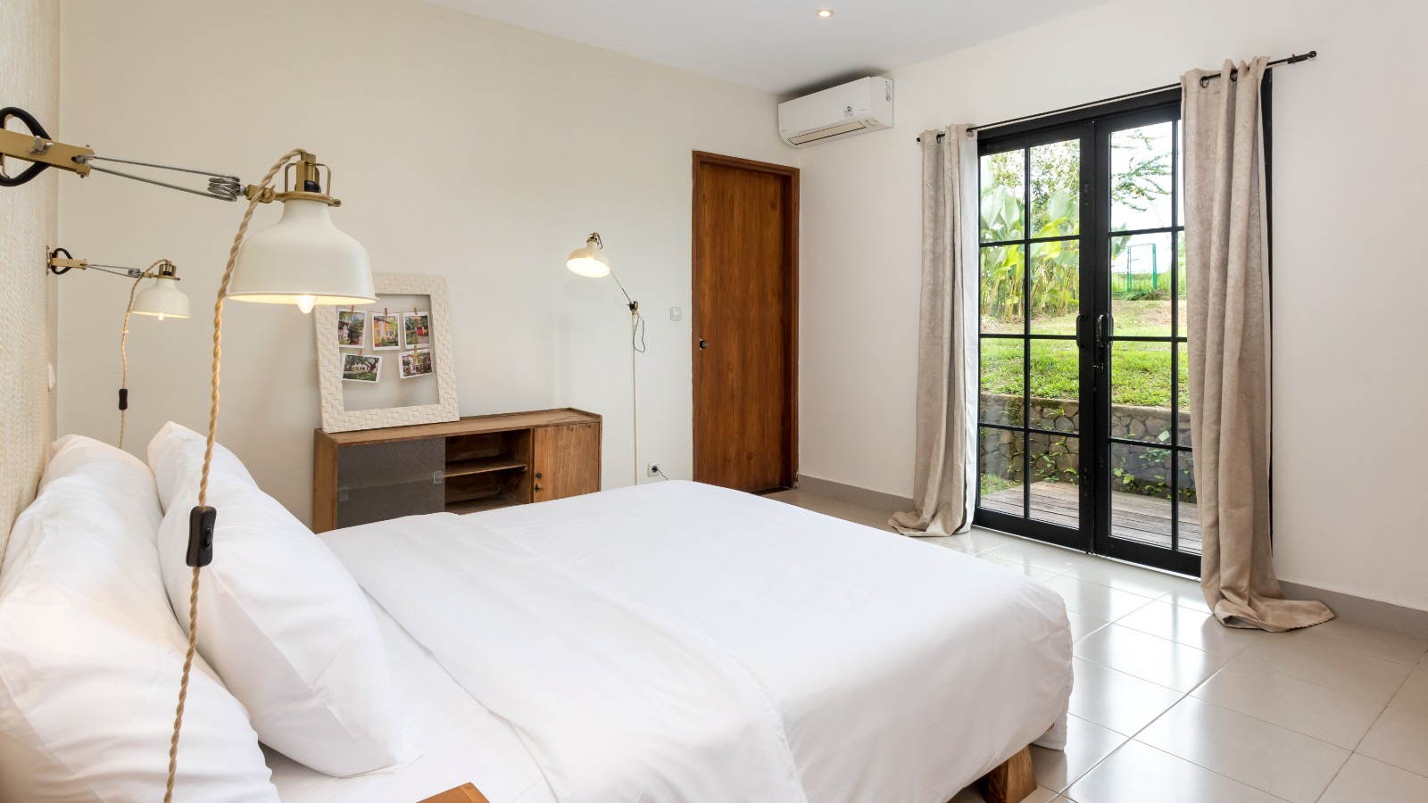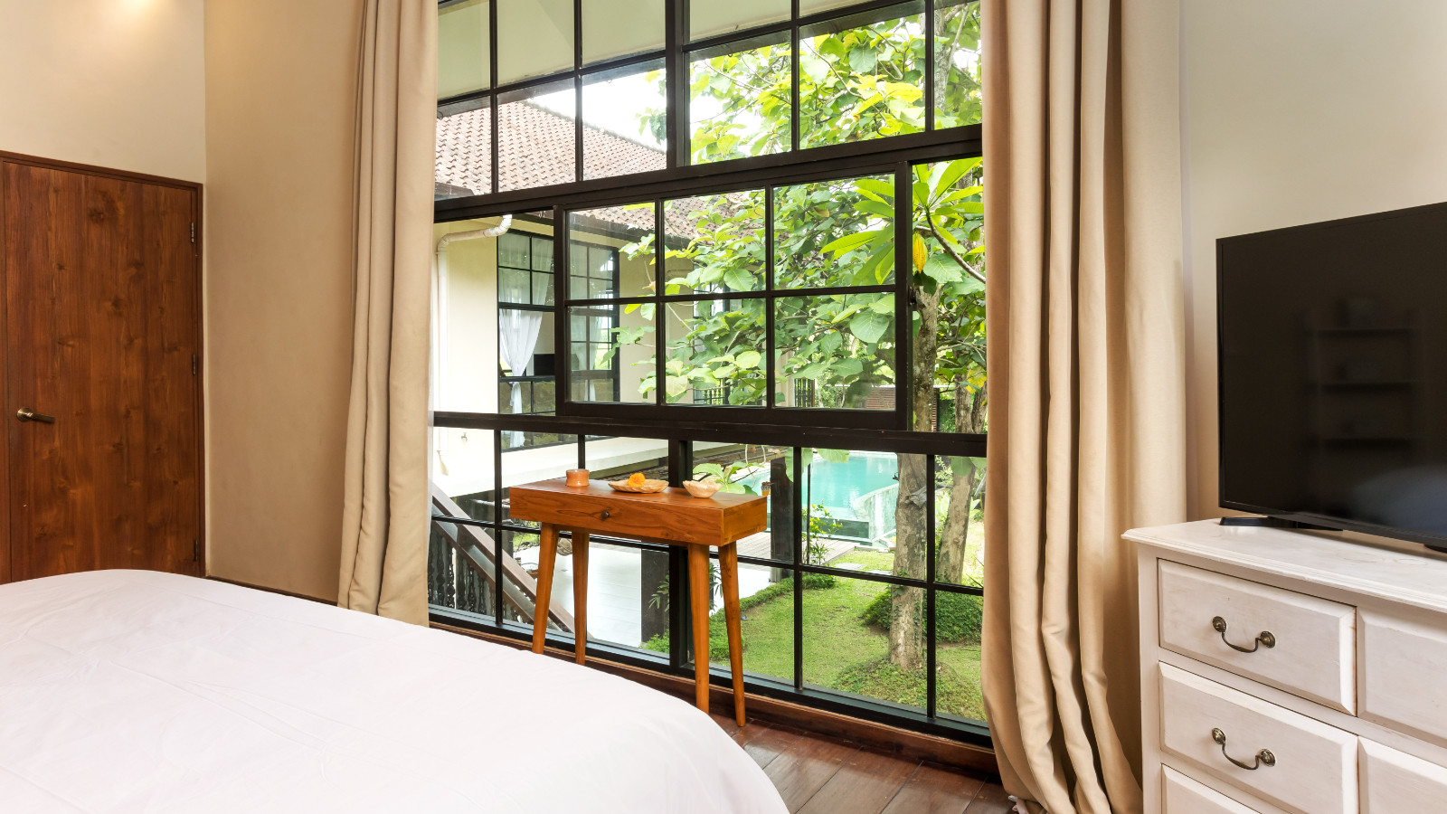 This villa can be your magical Balinese kingdom – a classic tropical holiday estate with five bedrooms that are spread over lush gardens. This magnificent Balinese villa is surrounded by a rich forest, manicured lawns, and rice fields. The feeling really is that of a land far, far away. But it is still close to many of Ubud’s top tourist attractions and activities. Inside, it exudes the artful and ornate feel of Bali, thanks to its unique architecture, décor, and the friendly hospitality of its staff members, who are always ready to serve you with a smile. This villa is a fabulous rental home in every way. Its ambiance is laid-back and relaxed, which makes it the perfect place for a serene holiday. You can stay with your friends or family and enjoy its many modern amenities and facilities. Soak up the ambiance and relax. Spend precious time with people who matter the most to you. Plan day trips to enjoy the many activities and attractions of Ubud. This Villa ticks all the right boxes, making it one of the best places to stay in Ubud. This brand new villa has 5 bedrooms for 10 guests. This large property can be your holiday home or a place to host an event. It has plenty of space for parties and special events like destination weddings, birthday parties, or anniversary celebrations. Four bedrooms have king beds, while the fifth has twins. They are all air-conditioned for your comfort.
