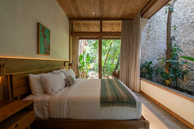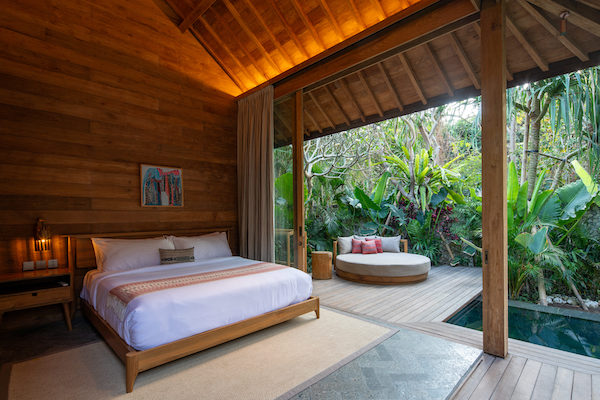 Our Ocean view 7 Villa is comprised of a 2 bedroom main house and a 1 bedroom Gladek. The main house is a 2 bedroom villa with it's own pool and ocean view. Each bedroom has its own en suite bathroom and AC. Kitchen and living area opens up to a wooden deck and pool view. The Gladek is the 1 bedroom with it's own plunge pool. The quaint 2 story abode has ocean views from the ACed bedroom and garden views from the lower level living area. Outside shower and bathroom is located on the lower level. Stone and wood accents in the 2 structures provide a true Bali feel. Guest have access to our complex property including the front lawn and private access to the beach.