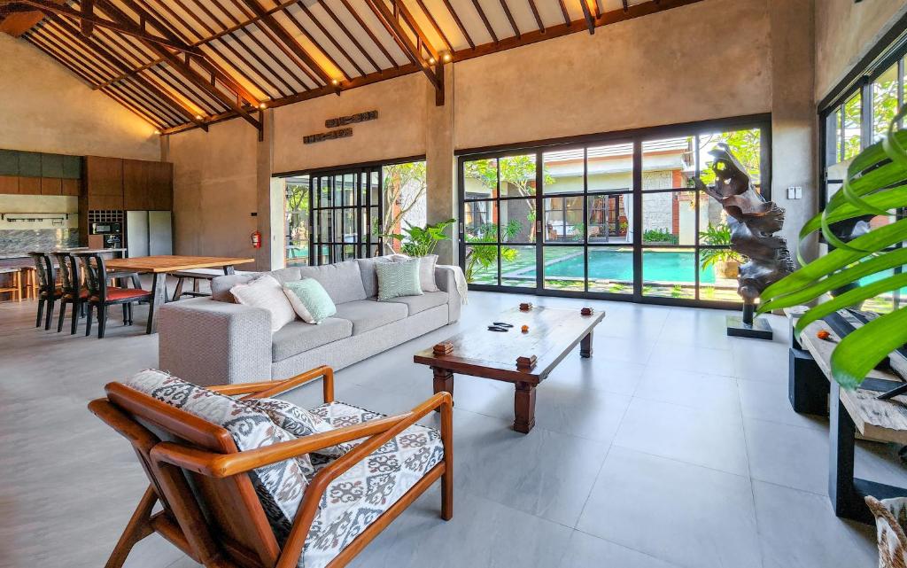 This villa features its exclusive 4-bedroom villas, private pool, and the unparalleled charm of Uluwatu. Uluwatu, renowned for its dramatic cliffs, pristine beaches, and vibrant surf culture, captures the essence of Bali's natural beauty. From exploring the iconic Uluwatu Temple to chasing breathtaking sunsets at Dreamland Beach, Uluwatu invites you to immerse yourself in its captivating allure. Step into this villa and enter a realm of opulence and comfort. The 4-bedroom villas are meticulously designed to exude elegance and sophistication, featuring spacious living areas, modern amenities, and private pools overlooking the lush tropical landscape. This 4-bedroom villa offers a retreat into serenity and seclusion, where every moment is a celebration of luxury and tranquility. Whether you're lounging by the pool, enjoying a meal in the outdoor dining area, or unwinding in the private garden, the villa's ambiance is designed to soothe your senses.
