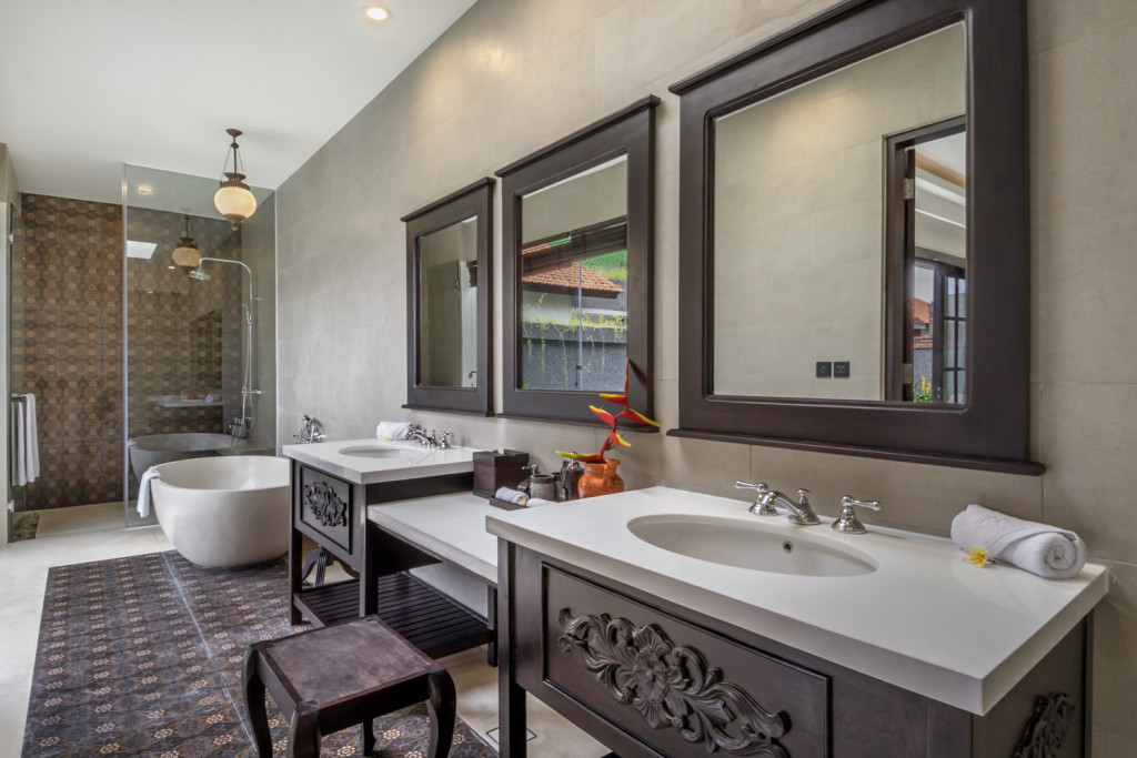 Tucked away in a quiet pocket edged by verdant rice fields, this villa is removed from the island’s urban buzz making it the ideal destination for a honeymoon in Bali. There’s a colorful array of eateries within the immediate area, while the lifestyle hotspots of Seminyak and a stretch of sunset beach can be reached in just 15-minutes by car. Cocooned within a garden compound complete with a swimming pool and space to soak up the sun, the One Bedroom villa is a private sanctuary that lends itself to romance. Designed with meticulous attention to detail, it is the quintessential honeymoon villa for couples embarking a new life together. This distinguished villa category has clearly defined spaces for sleeping and relaxation supported by modern amenities to ensure one-of- a-kind stay on the island of Bali. The opulent en-suite bathroom features a double vanity, free-standing tub and an over sized rain-shower for spa-inspired bathing indulgence.