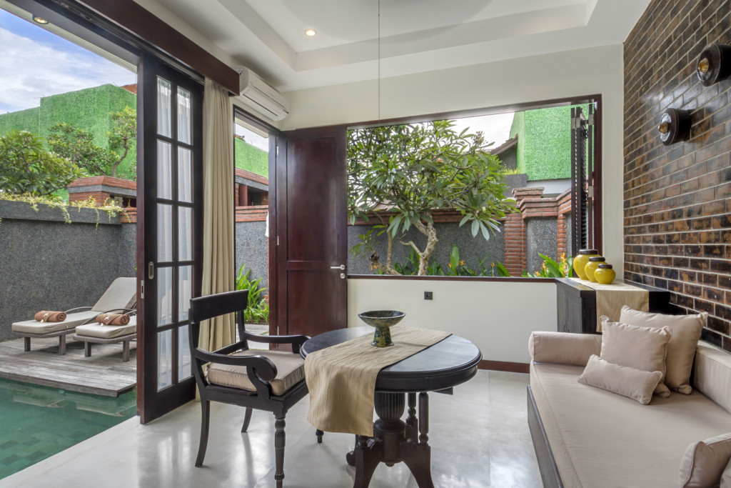 This villa is a one-bedroom deluxe villa. The villa has been designed to provide a private and luxurious holiday experience to people that will be made all the more vibrant with the location of the villa. It is found in the centre of the famous Kerobokan-Canggu-Seminyak triangle, close to all the major attractions in Bali! With a private swimming pool, the villa and the complex has everything to offer to its guests for a wonderful getaway. Tucked away in a quiet pocket edged by verdant rice fields, this villa is removed from the island’s urban buzz making it the ideal destination for a honeymoon in Bali. There’s a colorful array of eateries within the immediate area, while the lifestyle hotspots of Seminyak and a stretch of sunset beach can be reached in just 15-minutes by car.